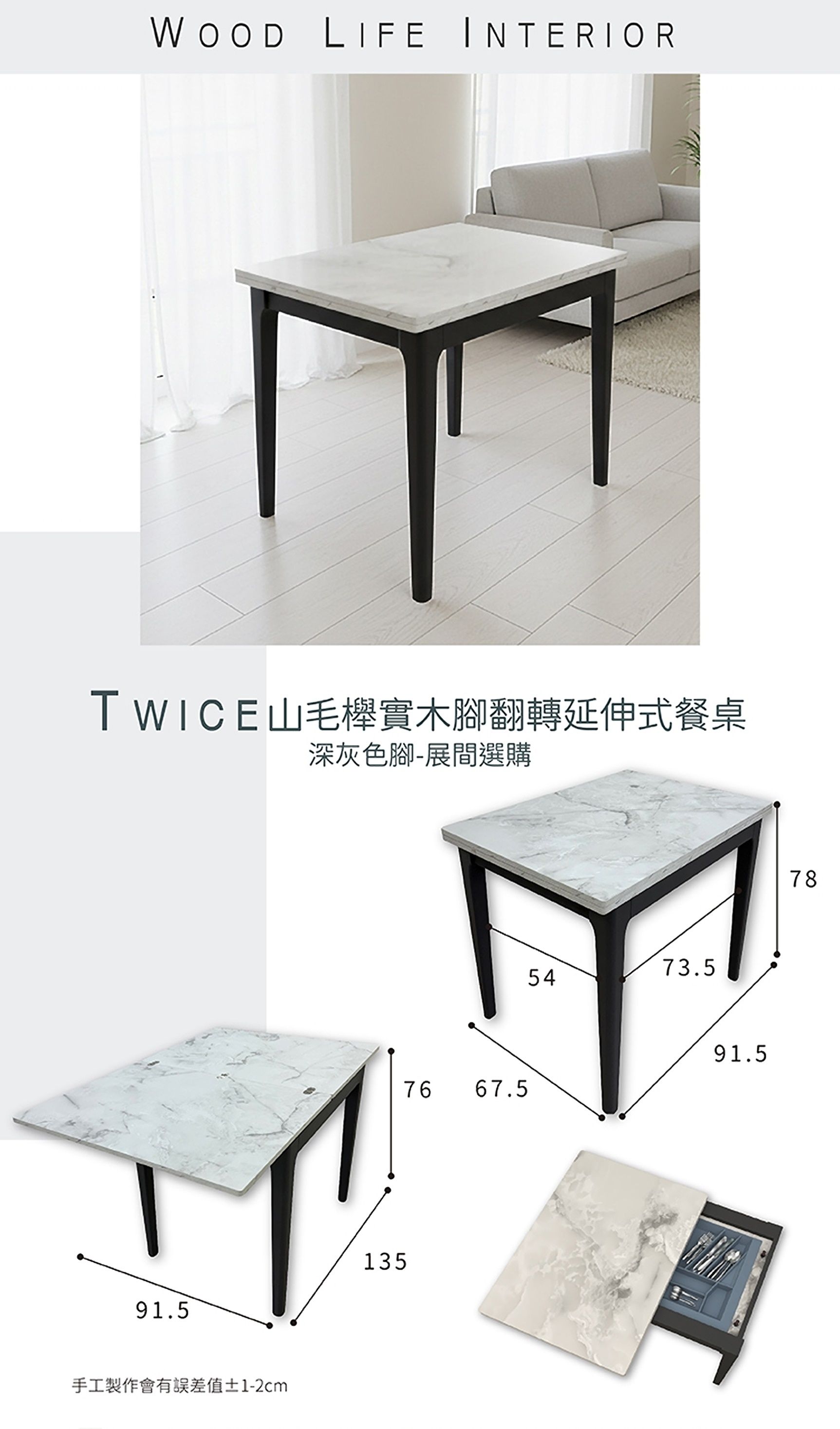 【限定門市選購】TWICE 全訂製山毛櫸實木腳翻轉延伸式餐桌-深灰色腳