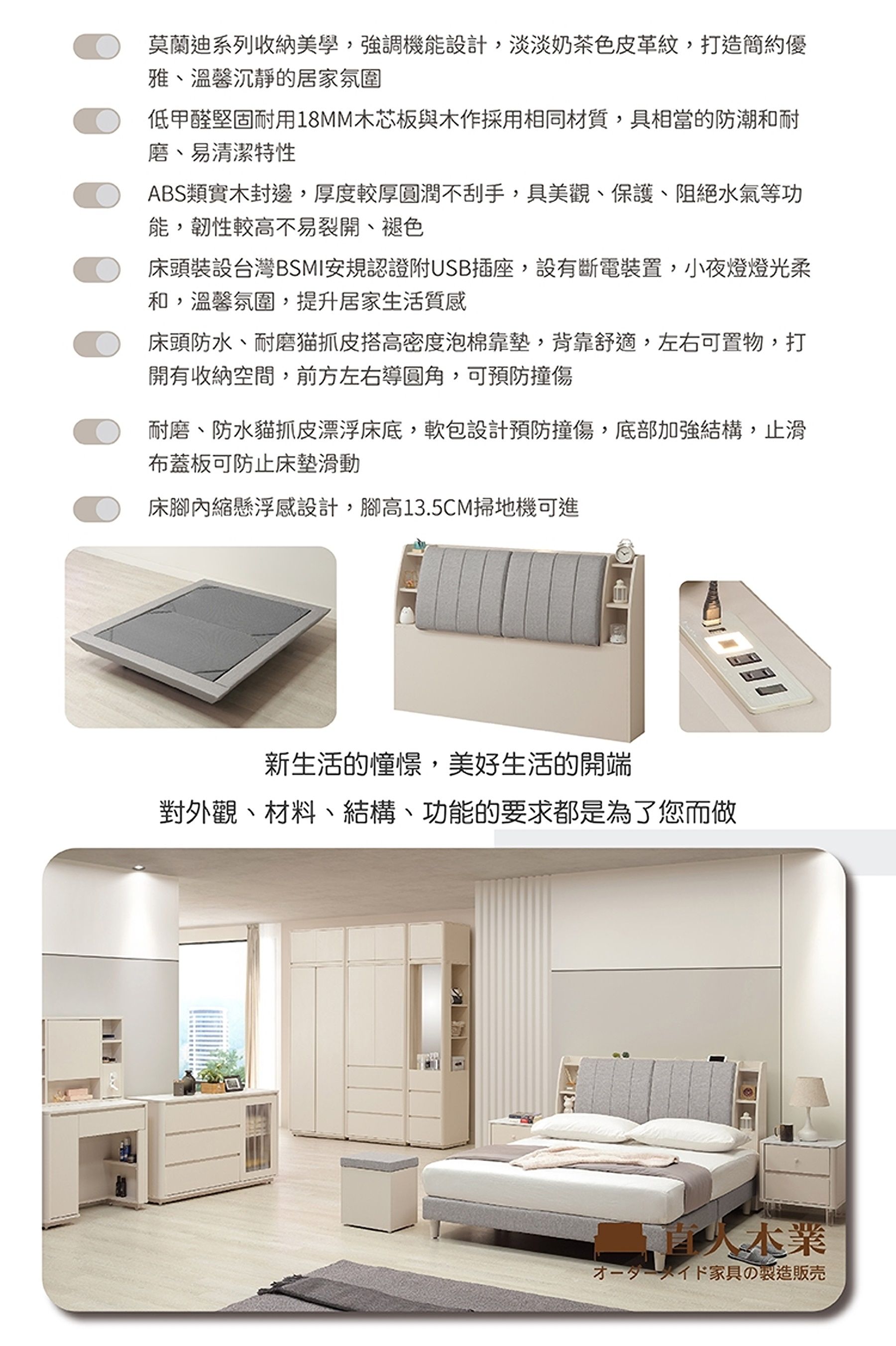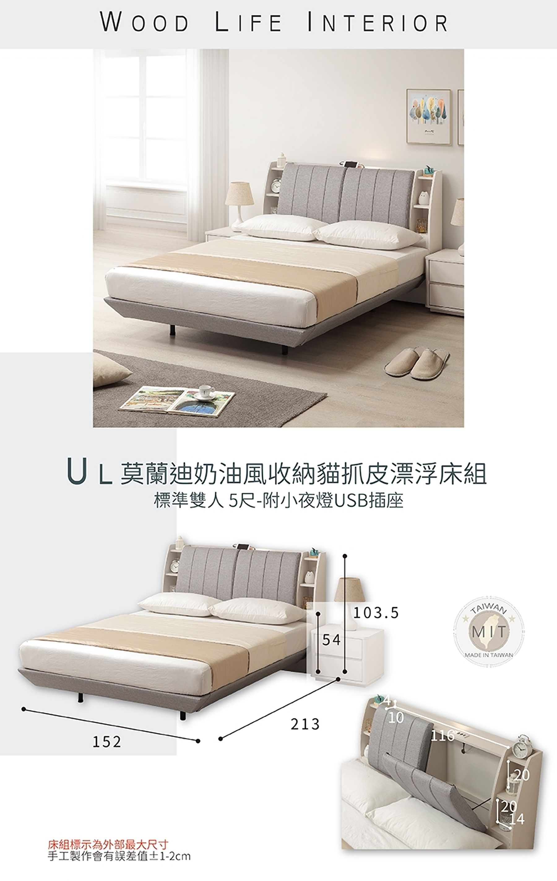 UL 莫蘭迪奶油風收納貓抓皮漂浮床組-標準雙人5尺
