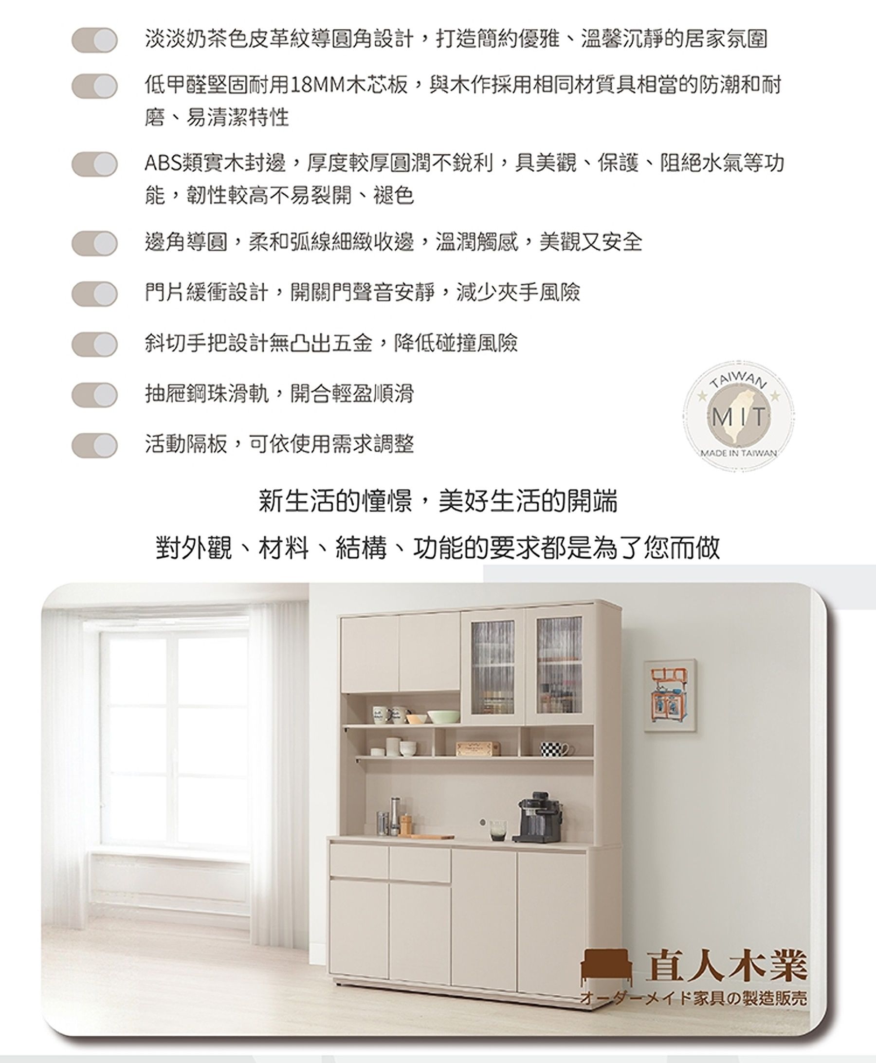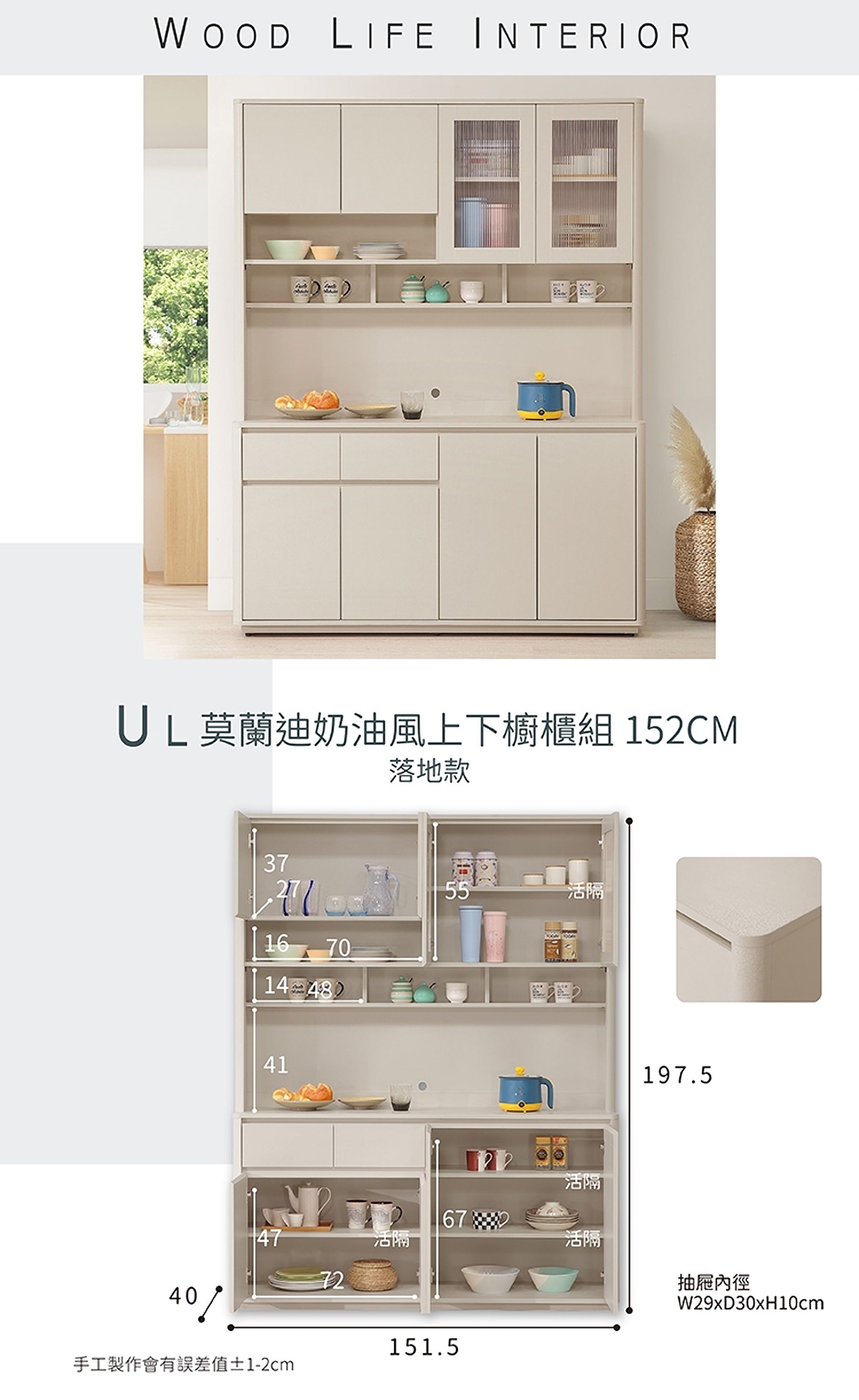 UL 莫蘭迪奶油風152CM上下櫥櫃組