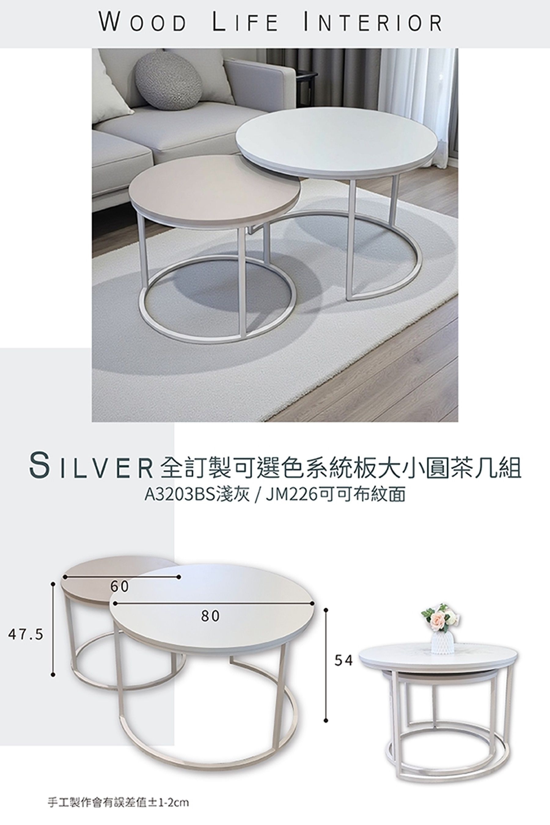 【限定門市選購】SILVER全訂製可選色系統板大小圓几組