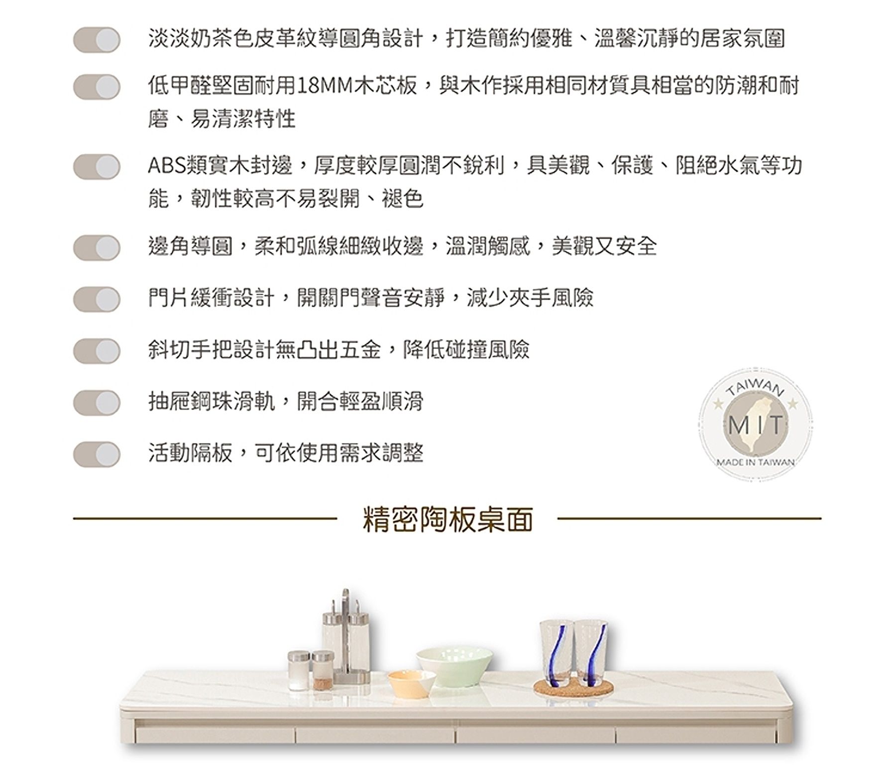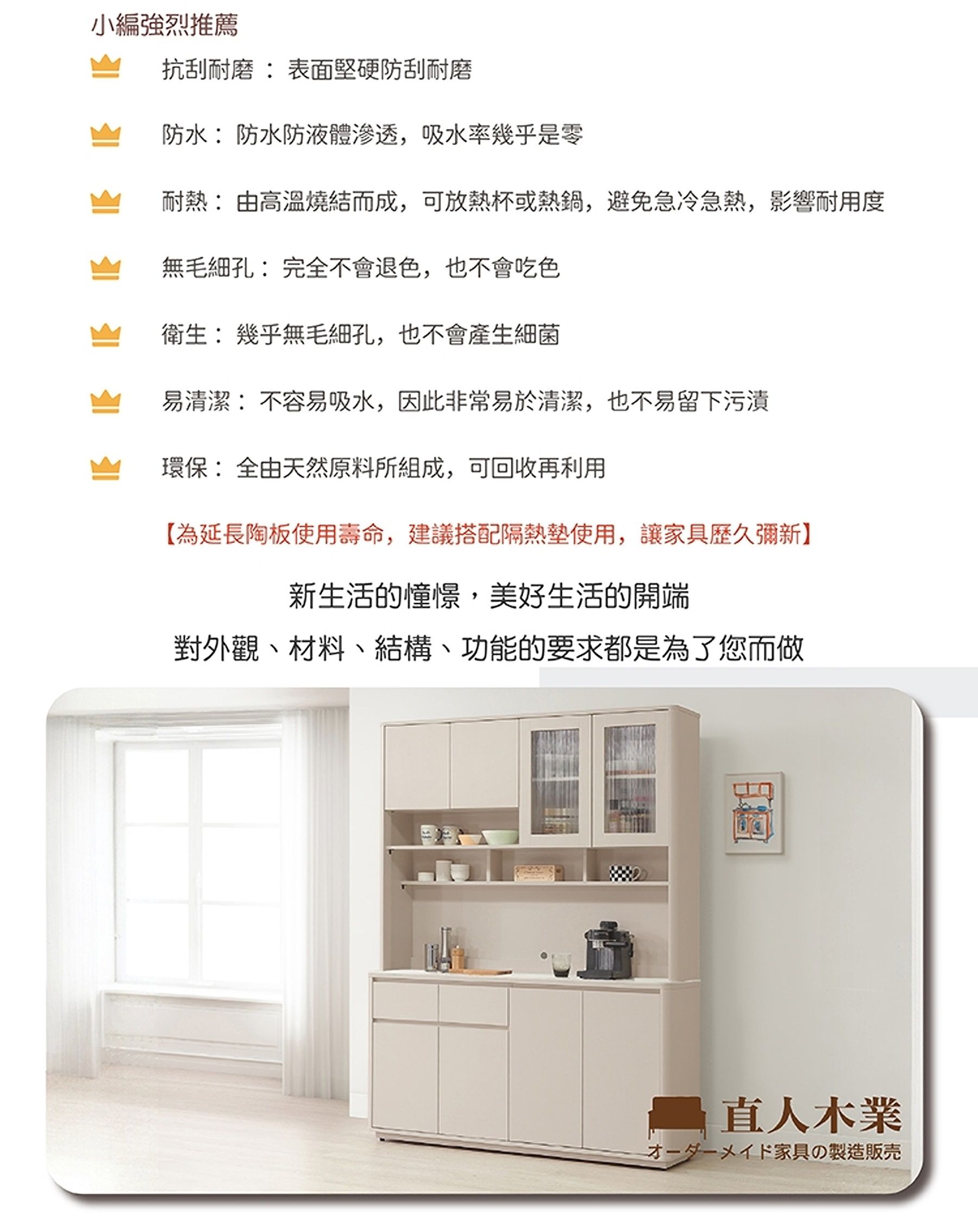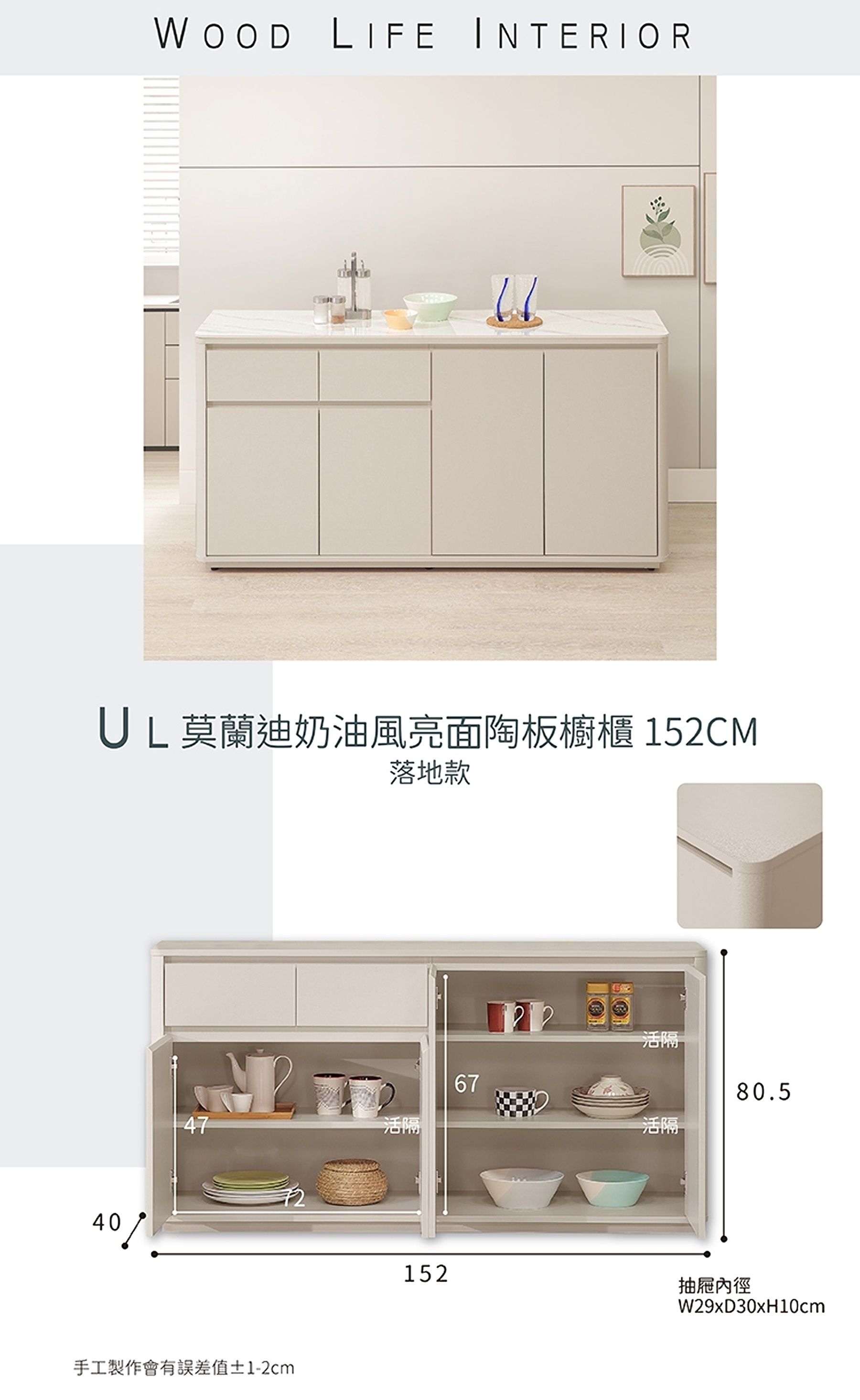 UL 莫蘭迪奶油風152CM亮面陶板櫥櫃
