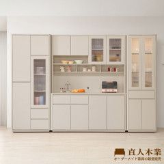 UL 莫蘭迪奶油風291CM上下櫥櫃收納櫃組 (79CM書櫃+152CM櫥櫃+60CM展示櫃)