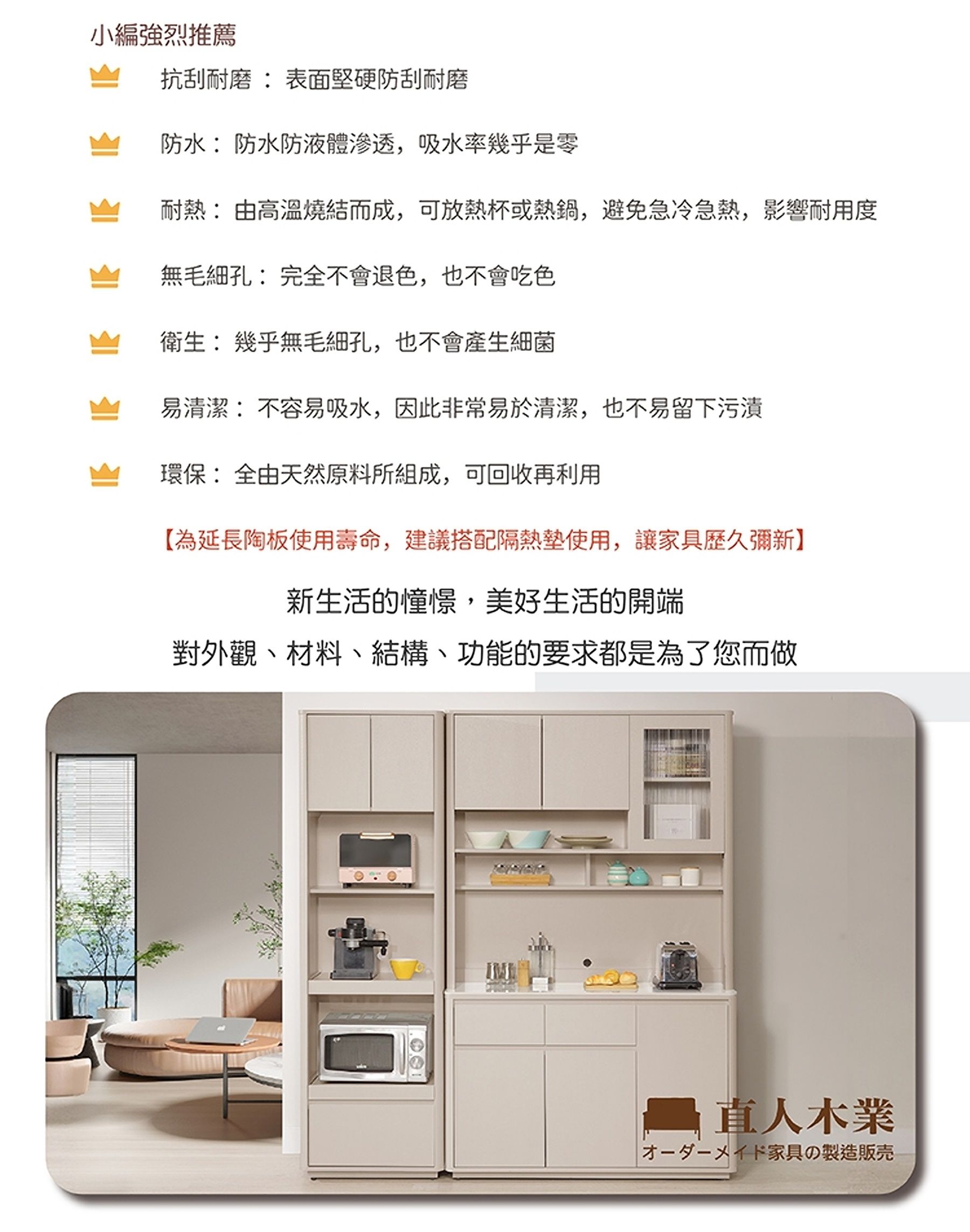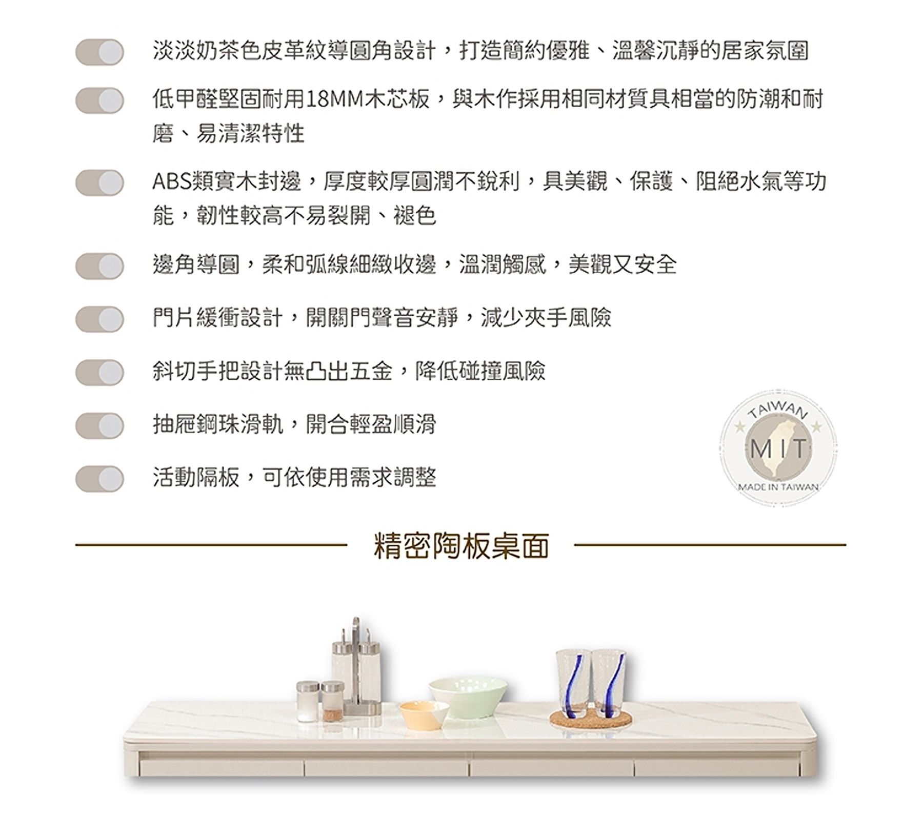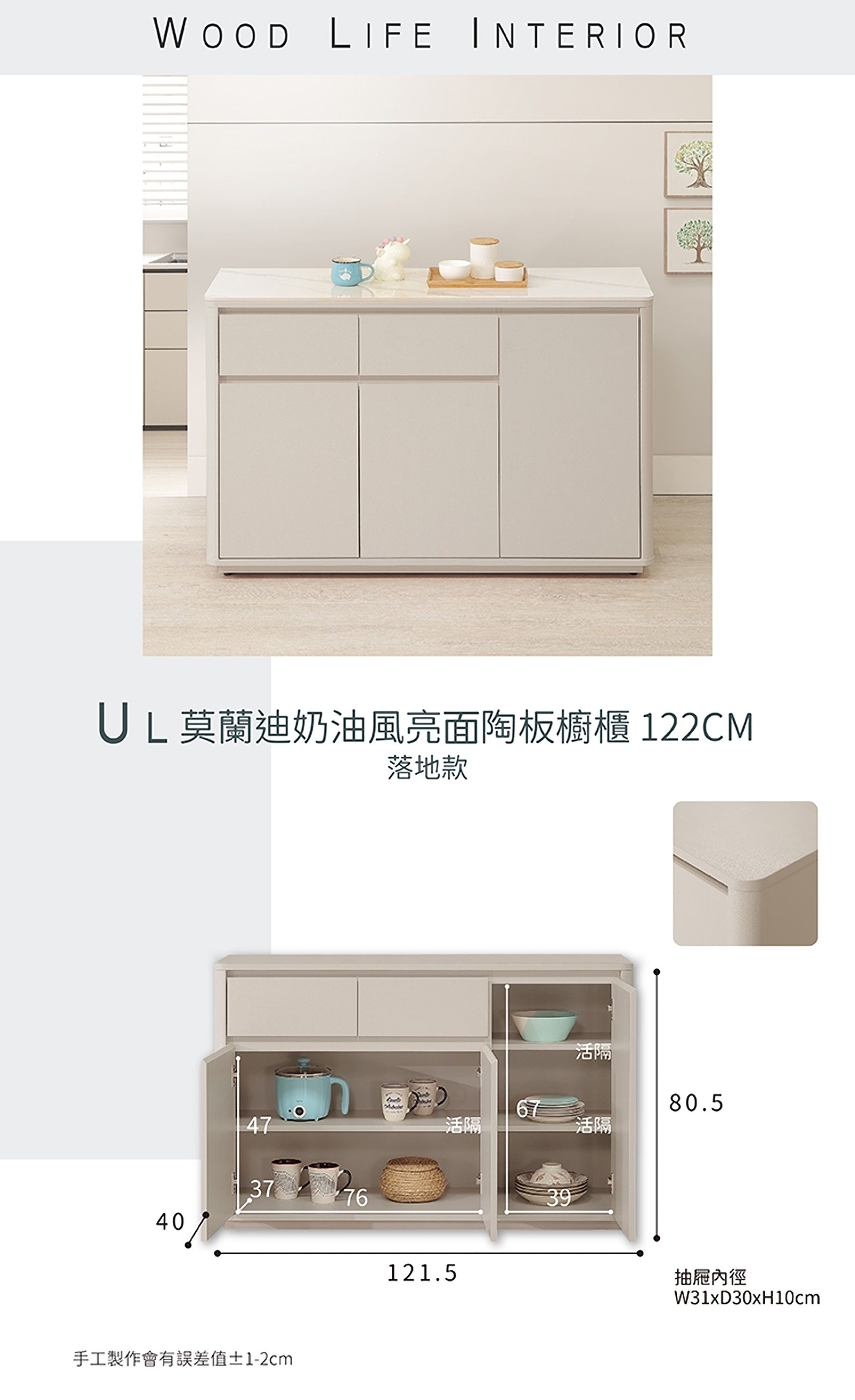 UL 莫蘭迪奶油風122CM亮面陶板櫥櫃