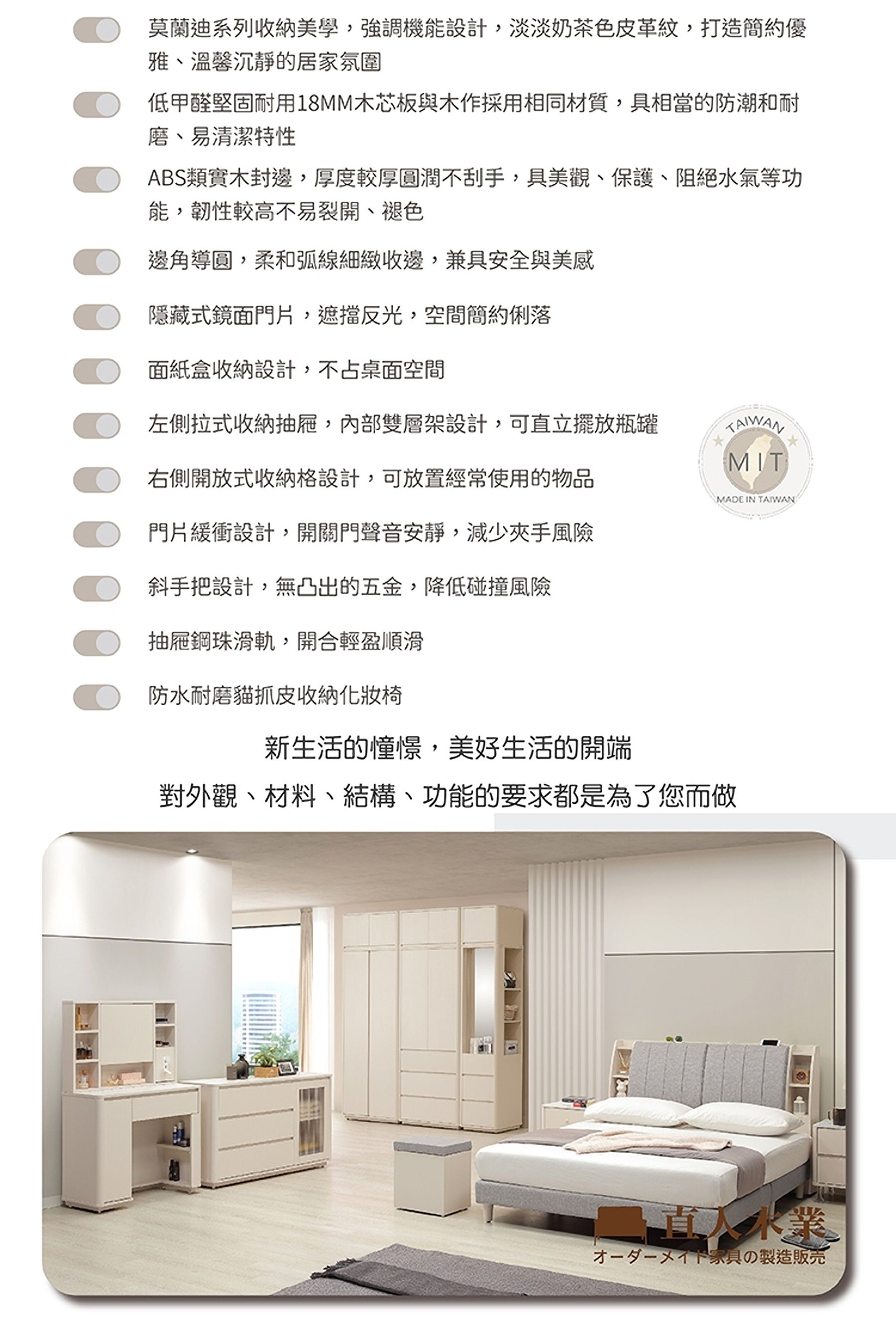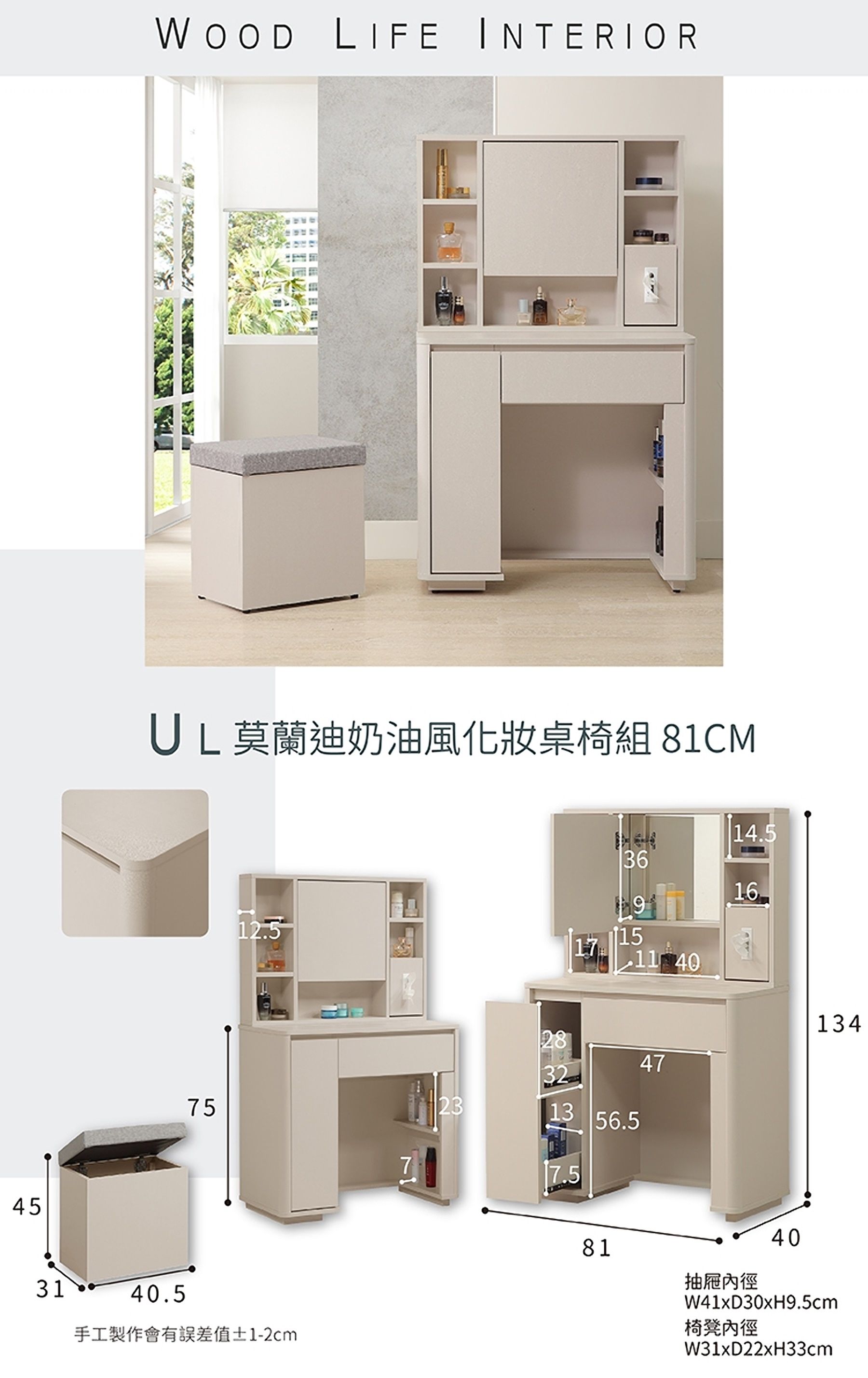 UL 莫蘭迪奶油風81CM化妝桌椅組