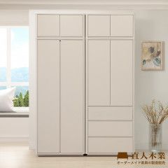 莫蘭迪奶油雲朵160CM開門高被櫥衣櫃組 (雙吊+三抽)