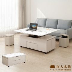 UL 莫蘭迪奶油風四邊導圓122CM可變餐桌茶几 (附兩張椅凳)