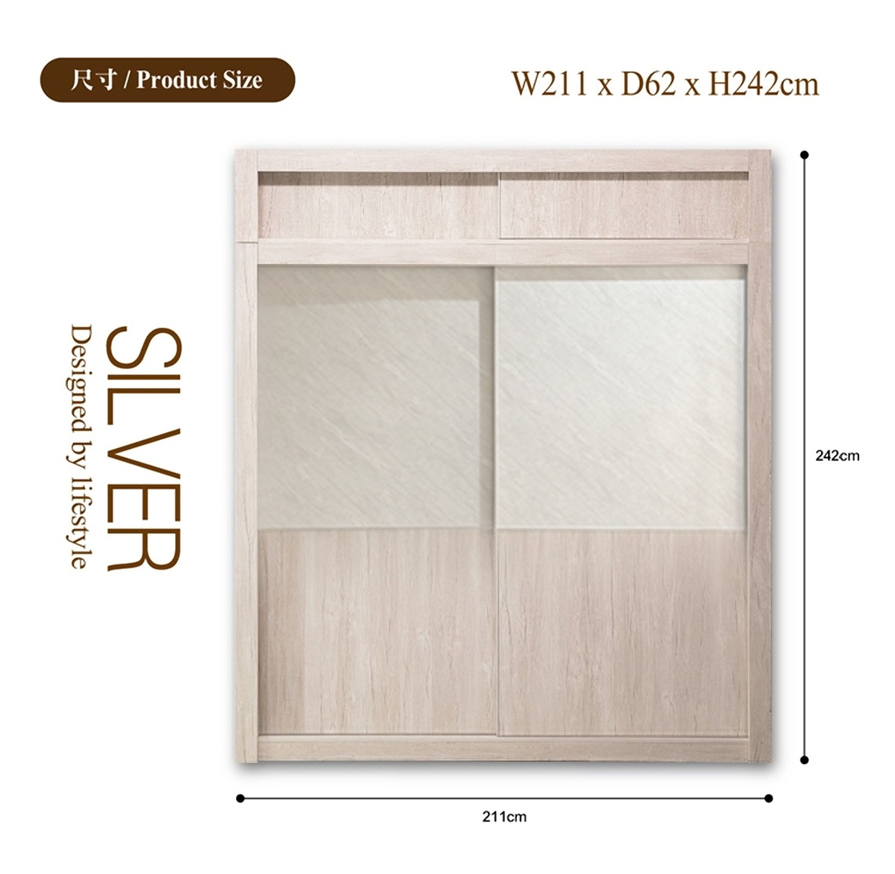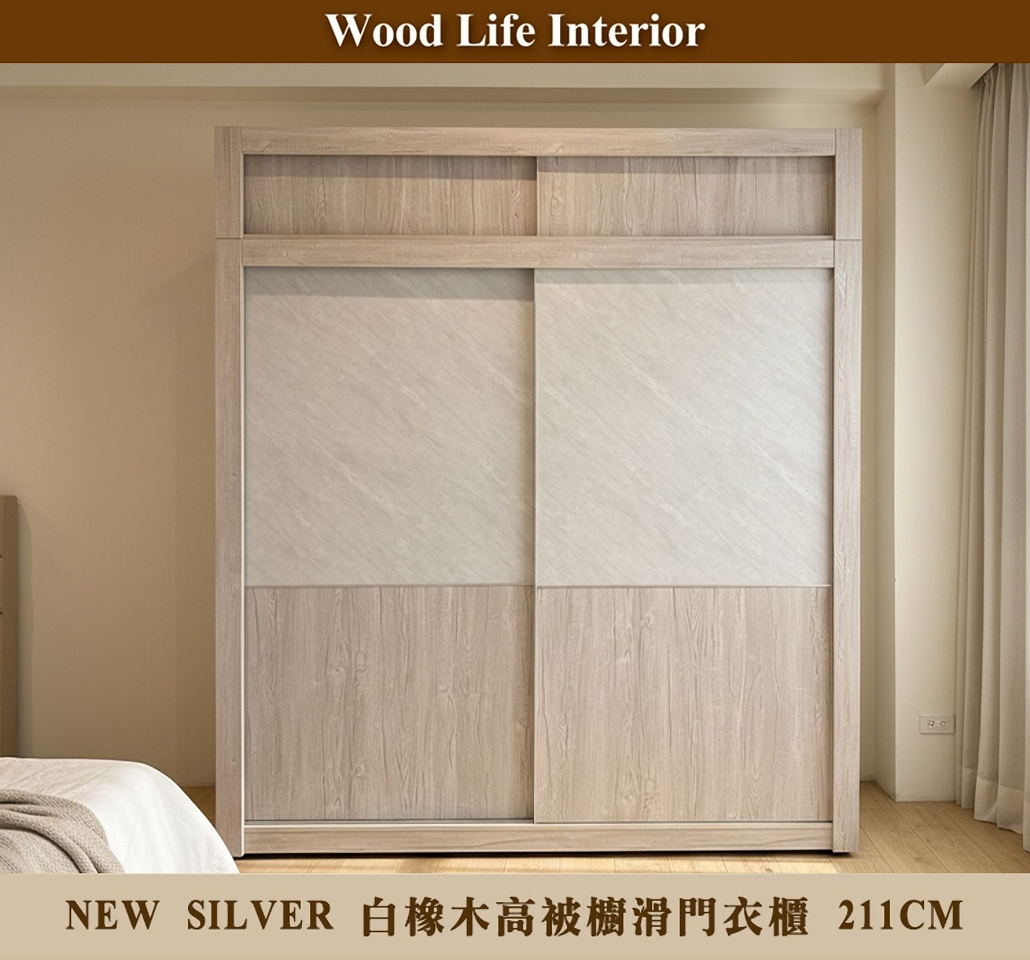 NEW SILVER 白橡木211CM高被櫥滑門衣櫃