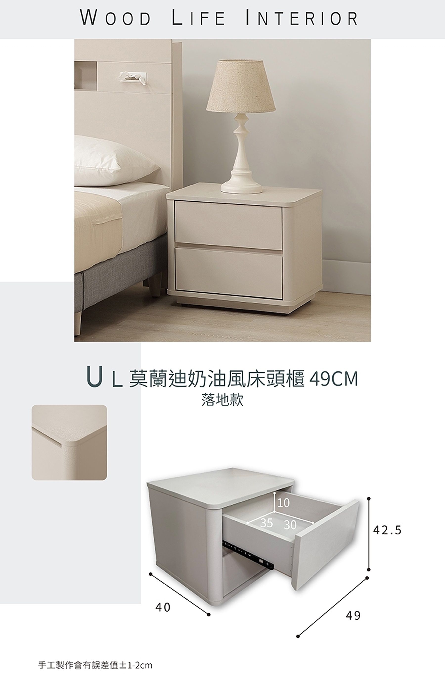 UL 莫蘭迪奶油風49CM床頭櫃