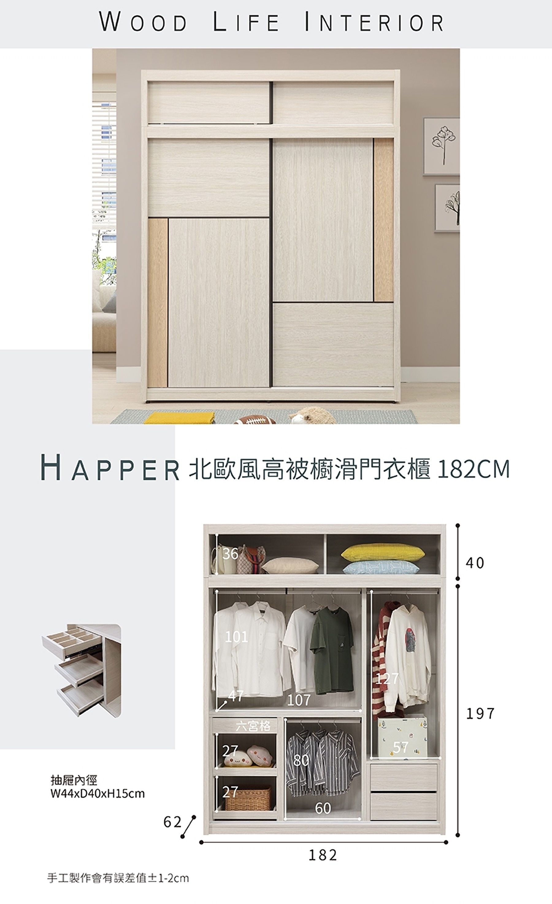 HAPPER 北歐風182CM高被櫥滑門衣櫃