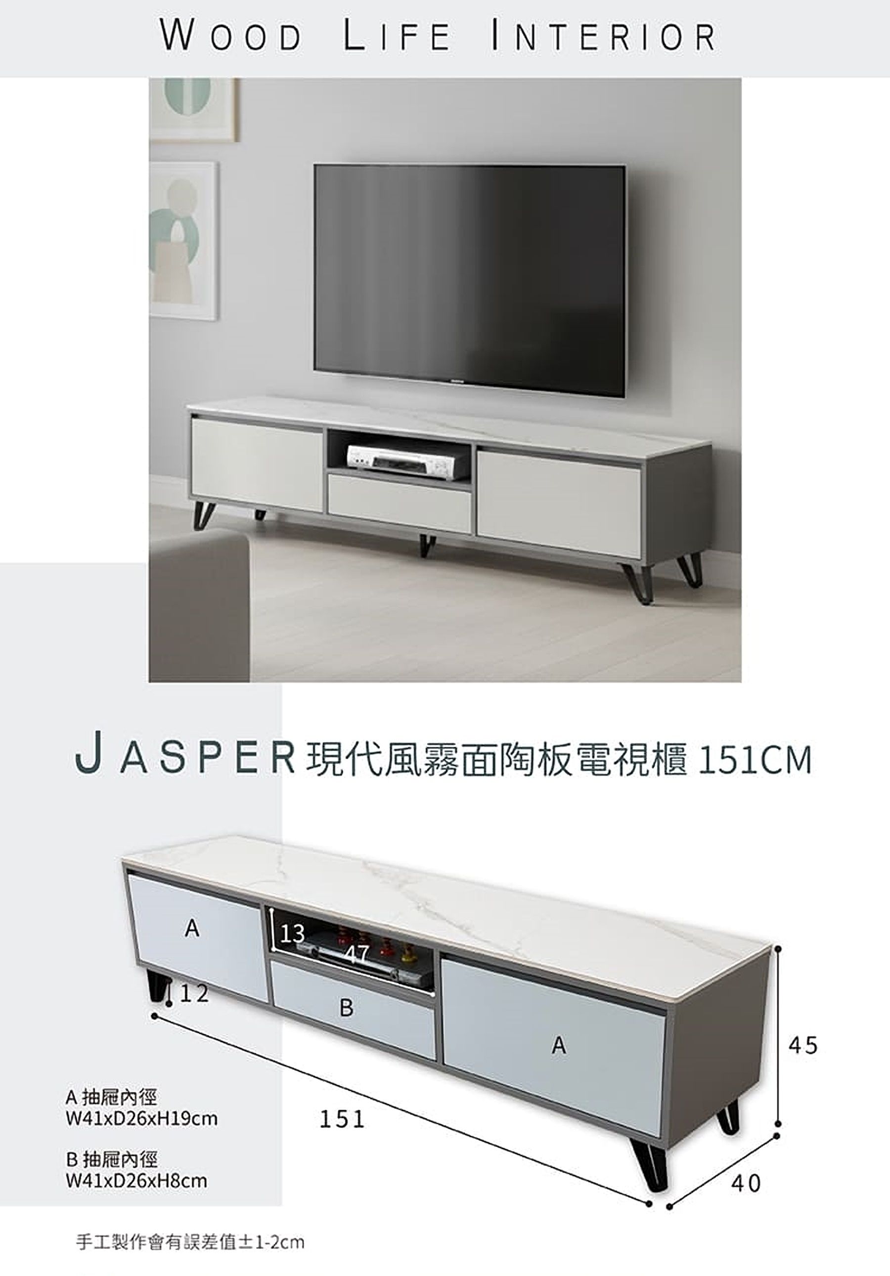 JASPER 現代風霧面陶板151CM電視櫃