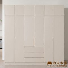 【限定門市選購】RJ現代奶油風240CM高被櫥開門衣櫃組 (單吊+雙吊+三抽)