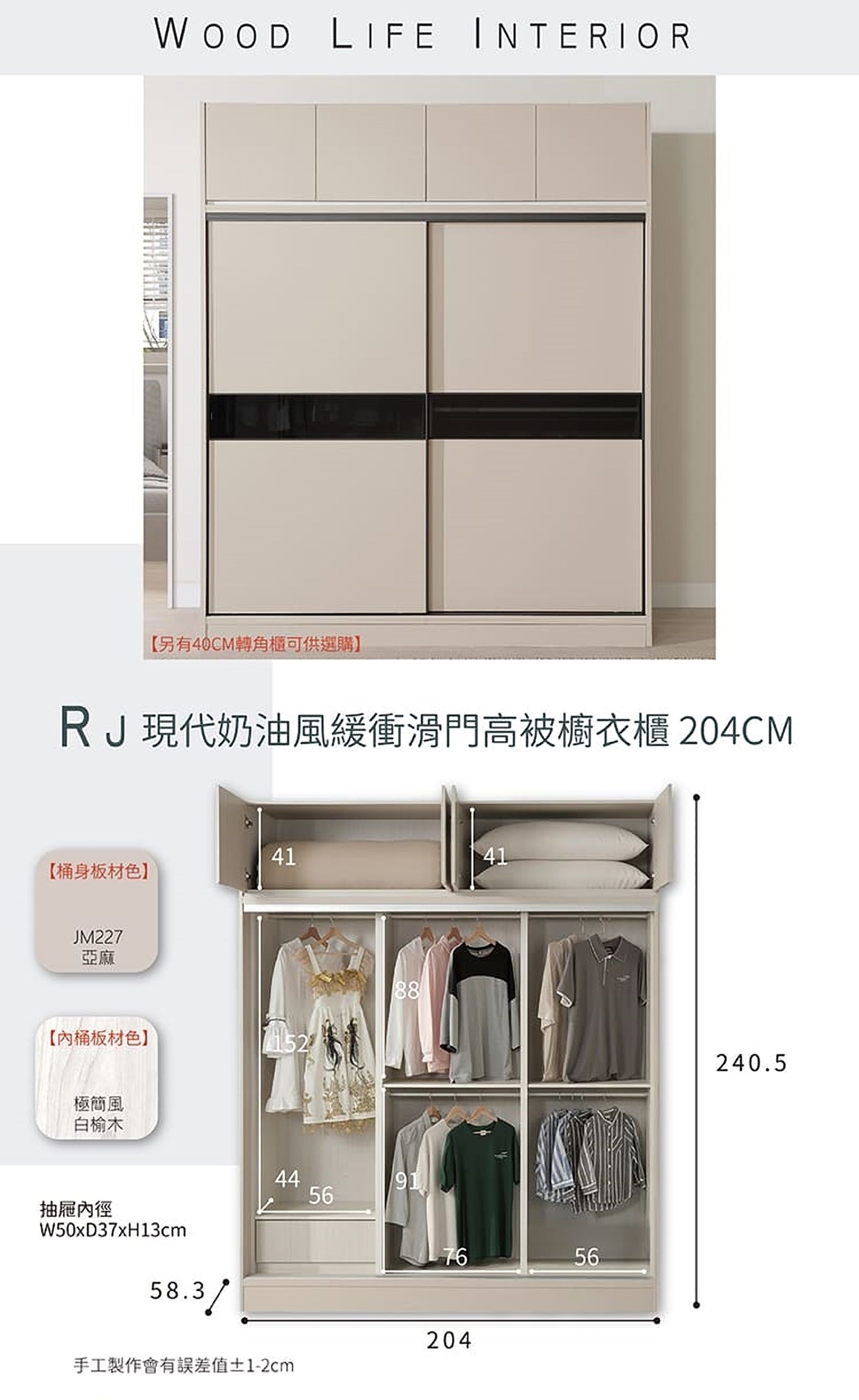 【限定門市選購】RJ現代奶油風204CM緩衝滑門高被櫥衣櫃