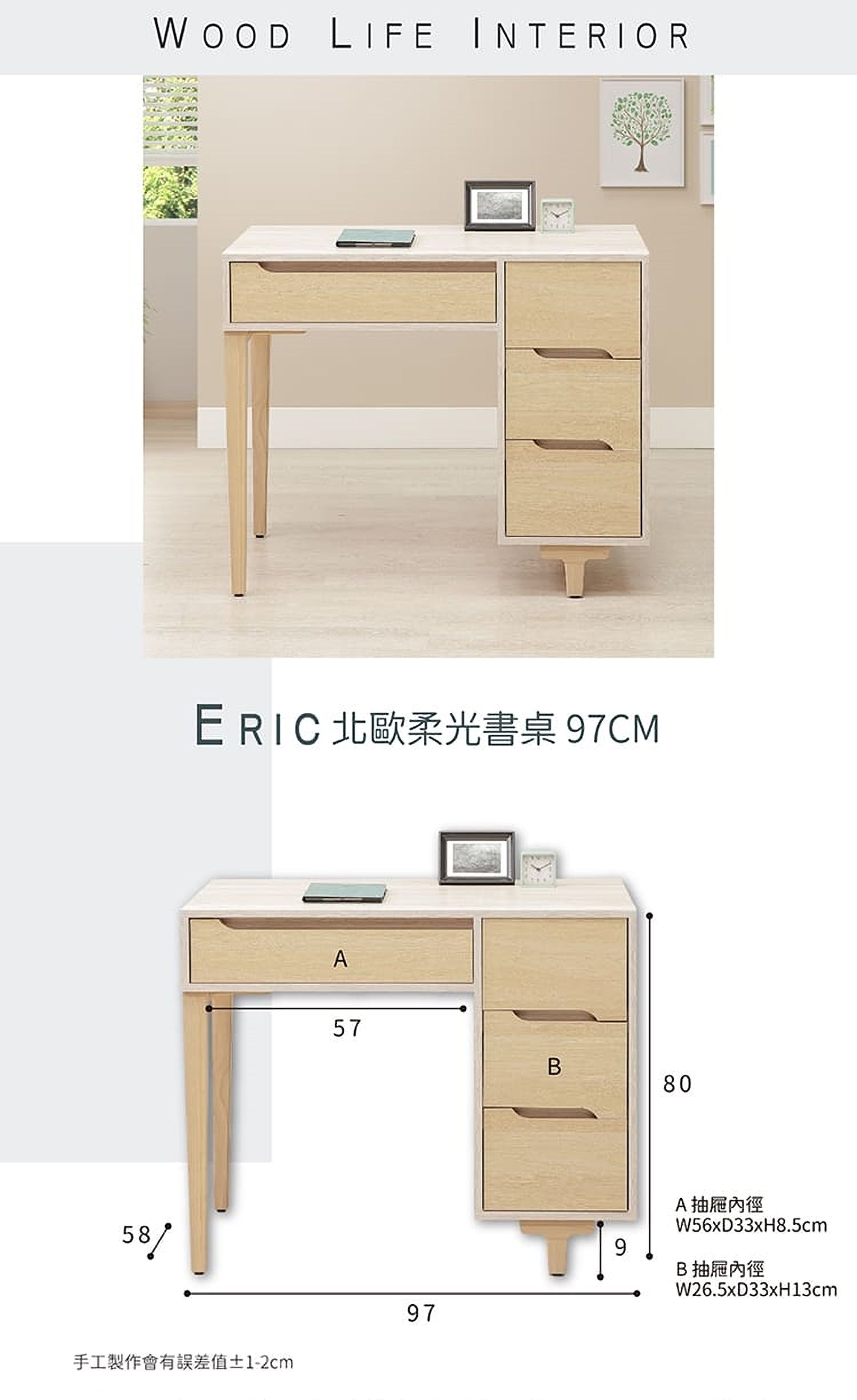 ERIC 北歐柔光97CM書桌