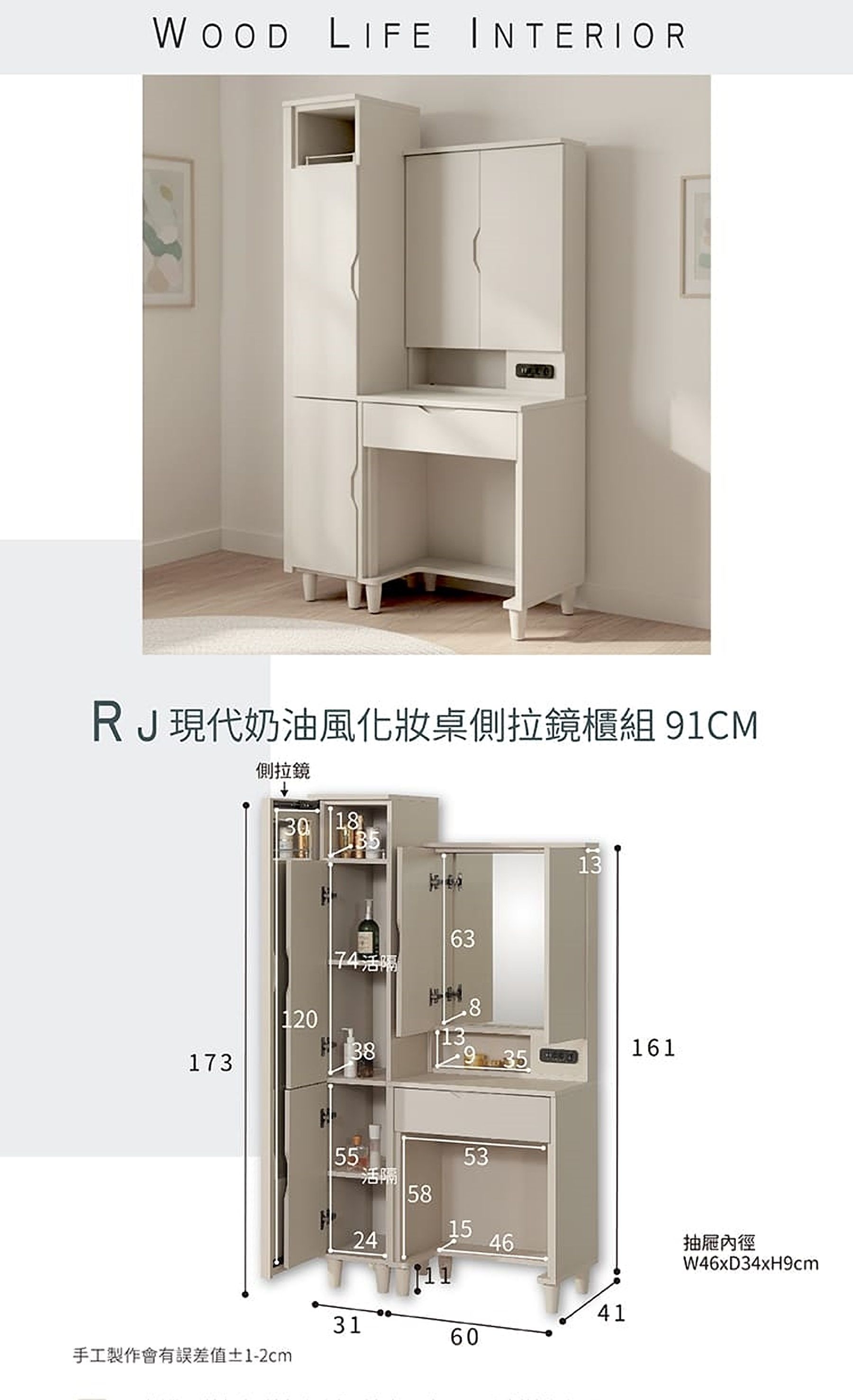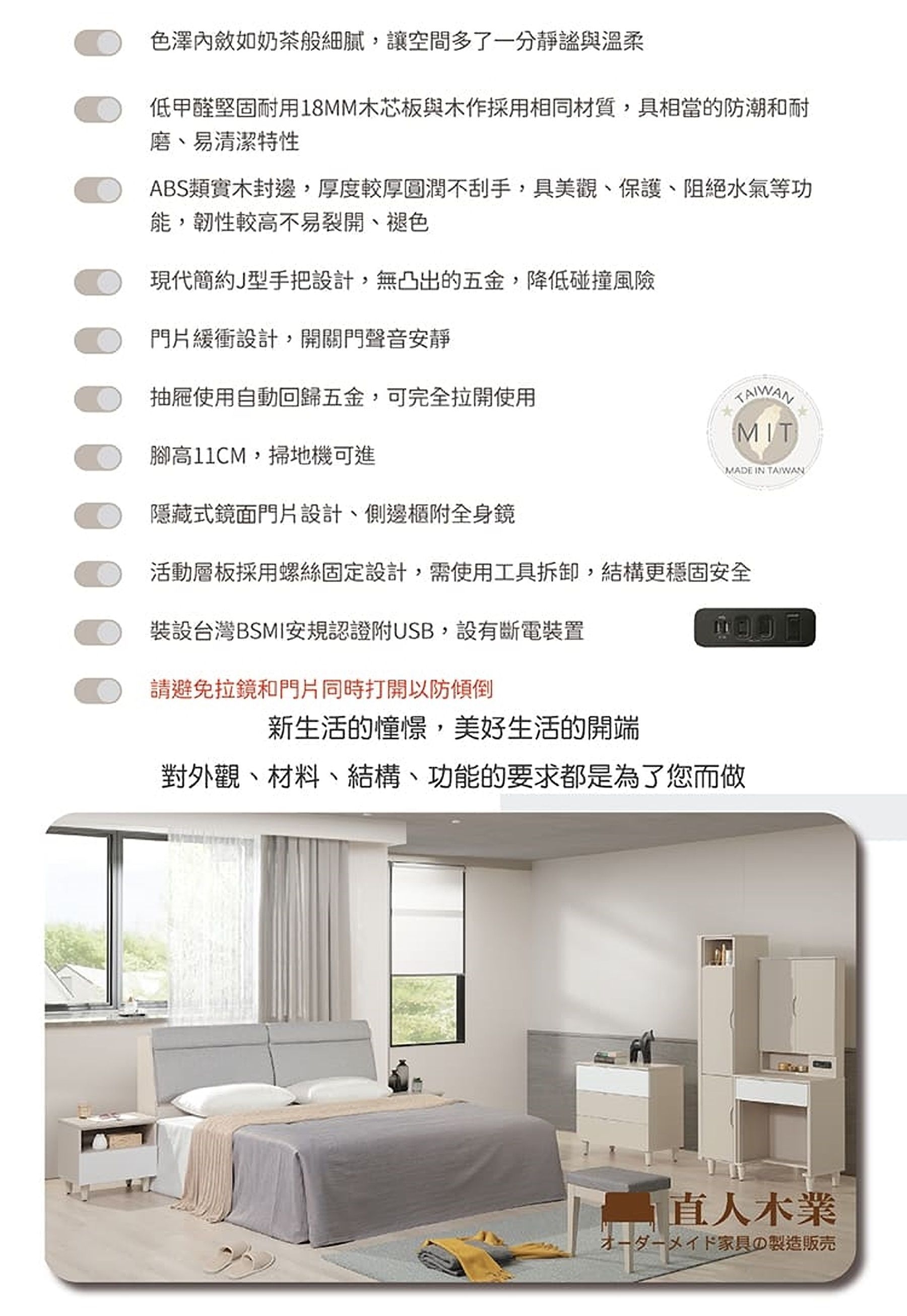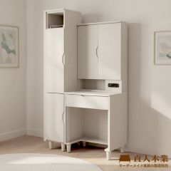 RJ 現代奶油風91CM側拉鏡化妝桌組