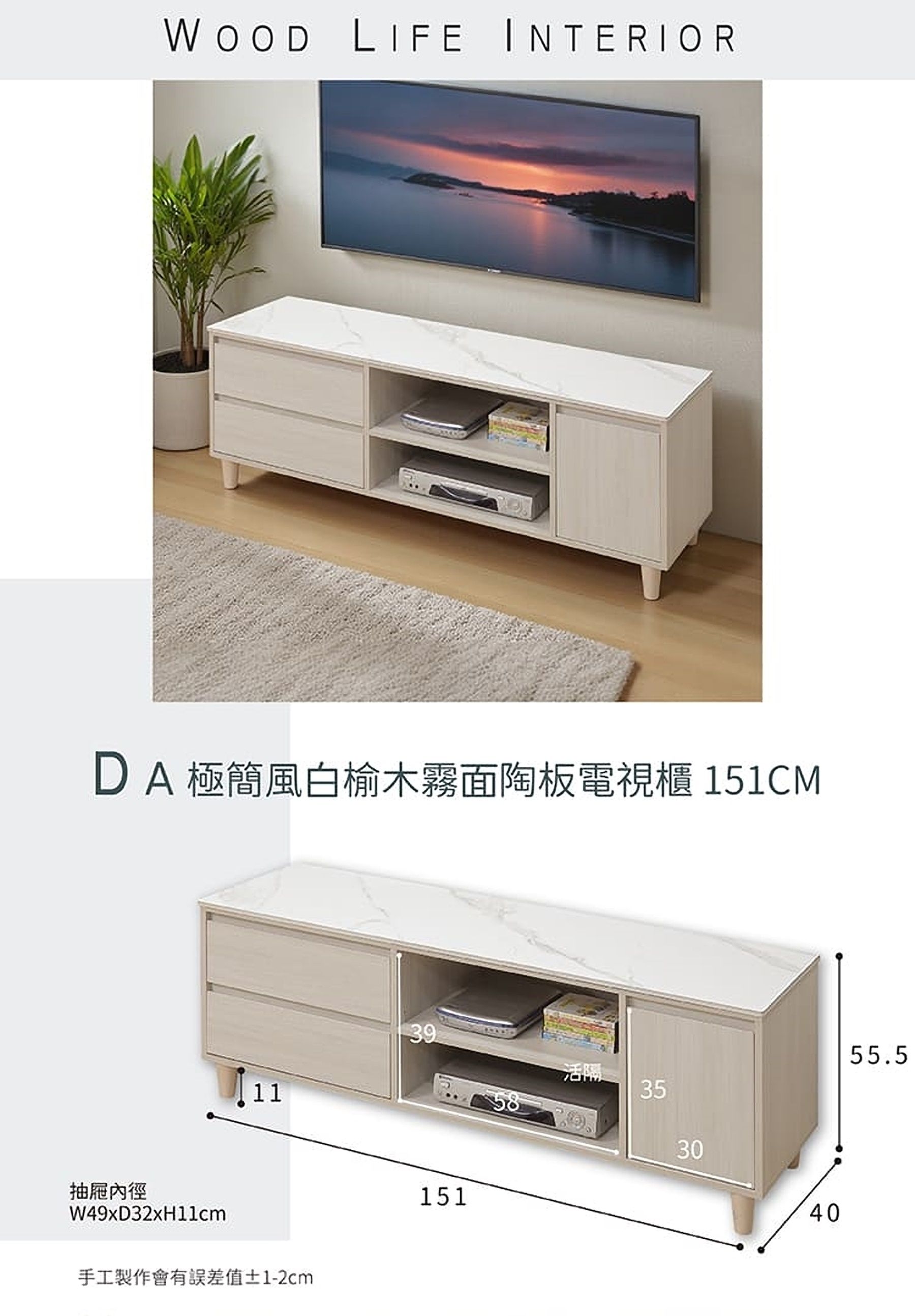 DA 極簡風白榆木霧面陶板151CM電視櫃
