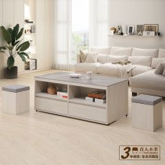 DA 極簡風白榆木120CM亮面灰陶板茶几