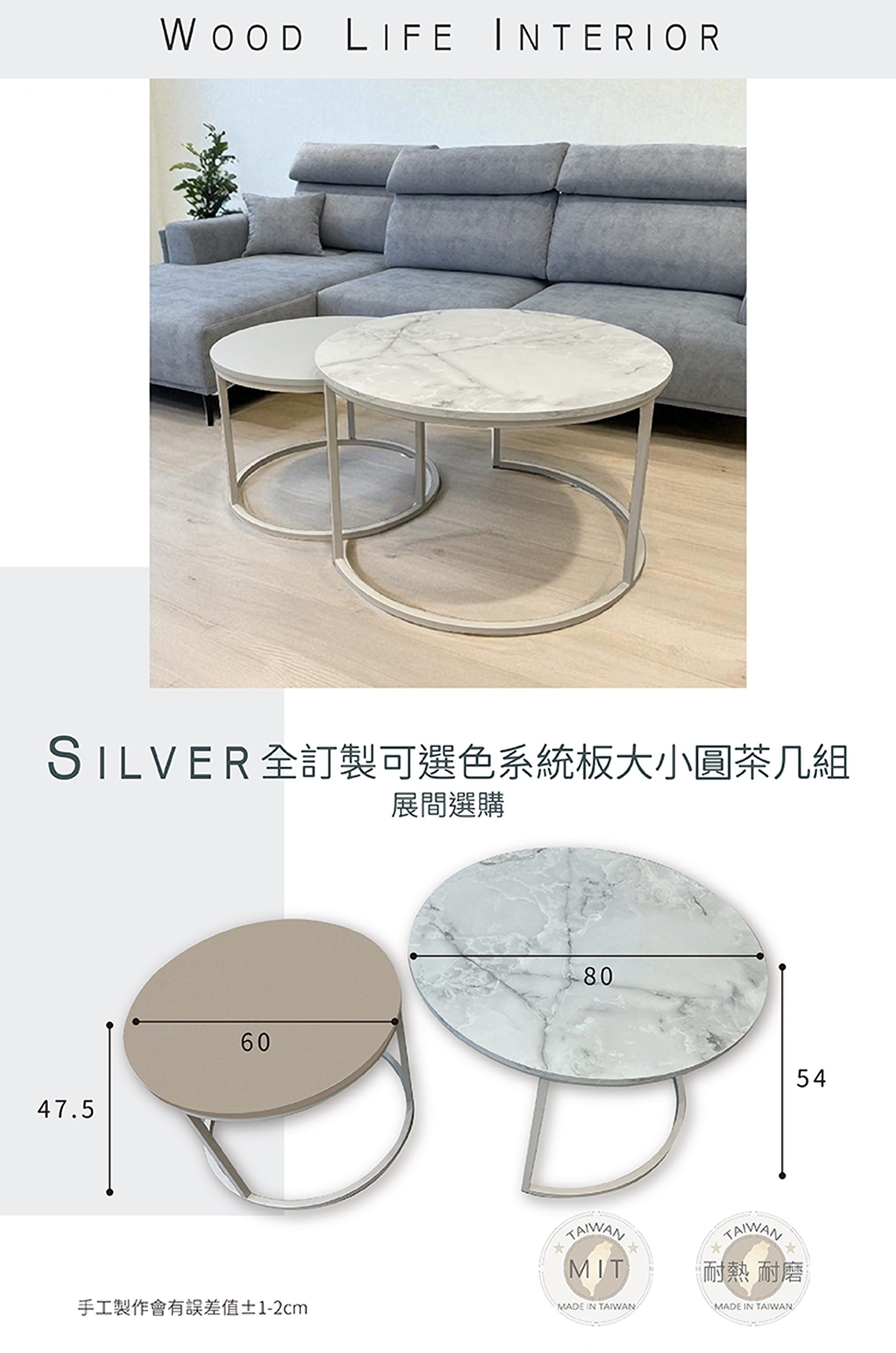 【限定門市選購】SILVER 全訂製可選色系統板大小圓茶几組