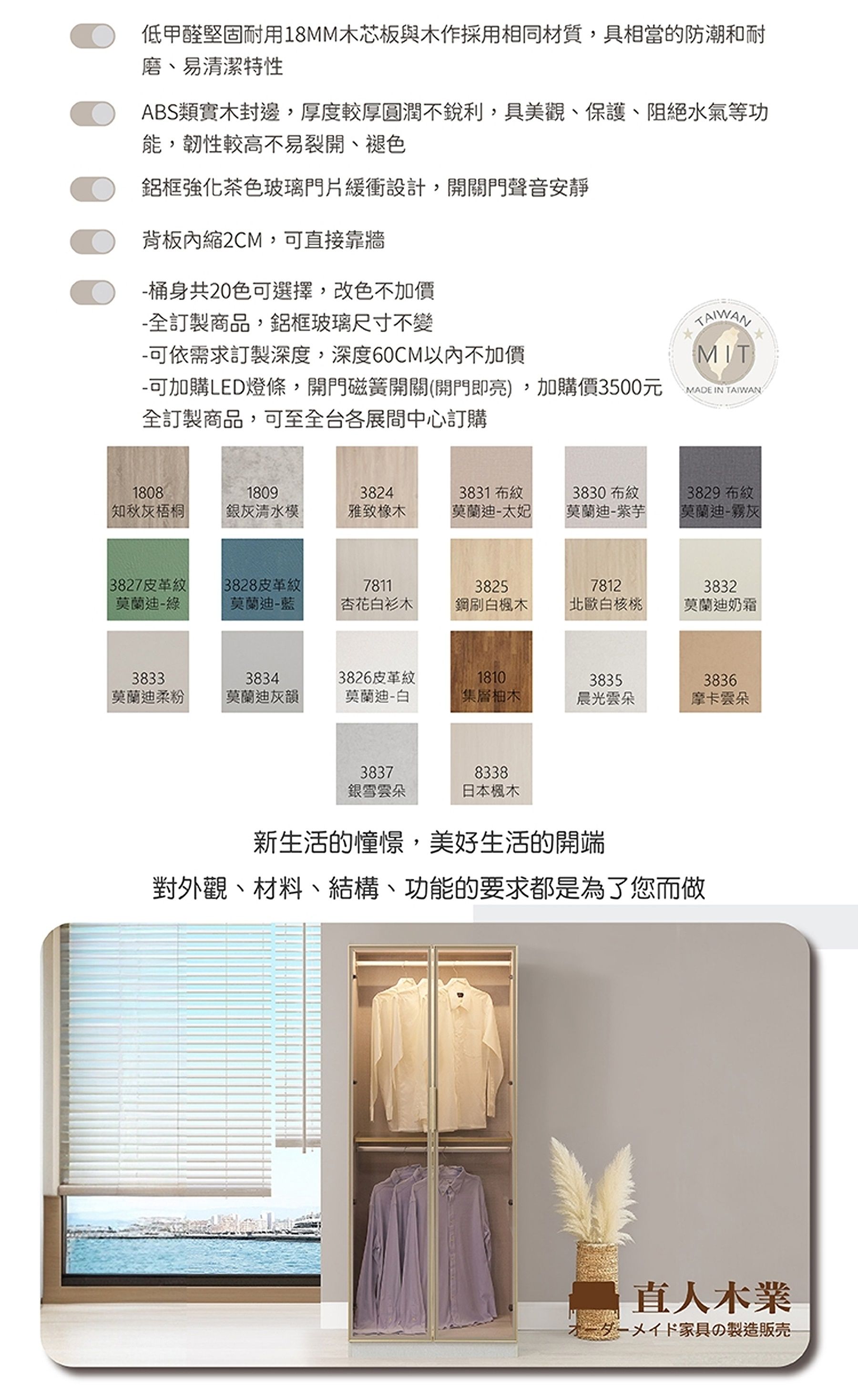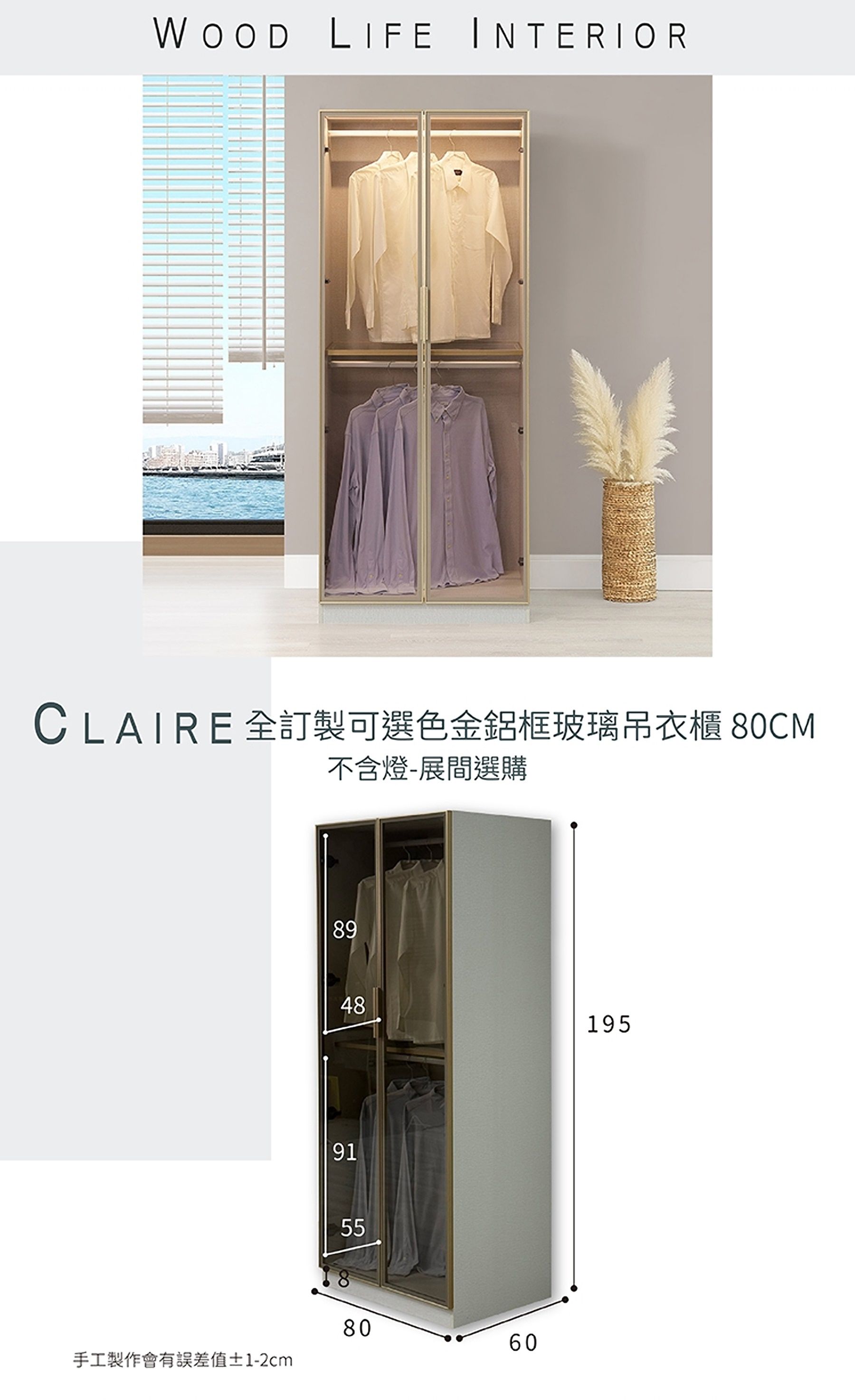 【限定門市選購】CLAIRE全訂製可選色金鋁框玻璃80CM吊衣櫃 (不含燈)