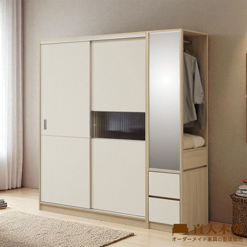 【限定門市選購】DS 全訂製蘭迪緩衝190CM滑門衣櫃 (150CM滑門衣櫃+40CM鏡面三抽櫃)