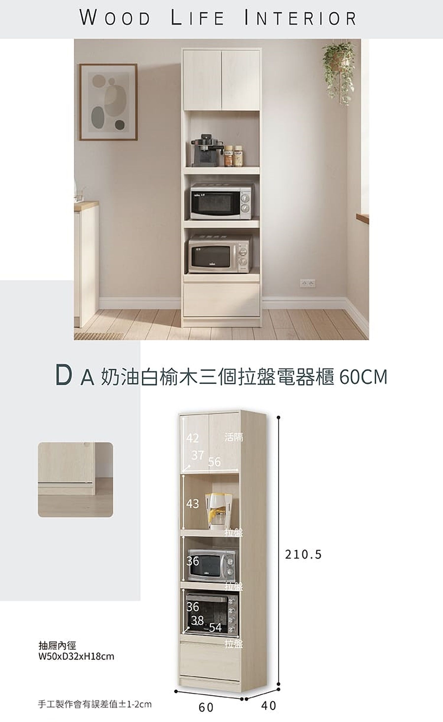 DA 奶油白榆木60CM三個拉盤電器櫃