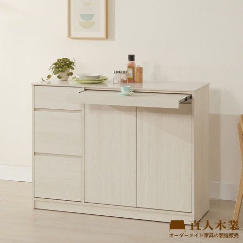 DA 奶油白榆木122CM亮面陶板拉盤櫥櫃