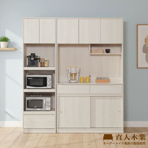 DA 奶油白榆木182CM電器櫃滑門櫥櫃組 (60CM電器櫃+122CM拉盤上下櫥櫃)