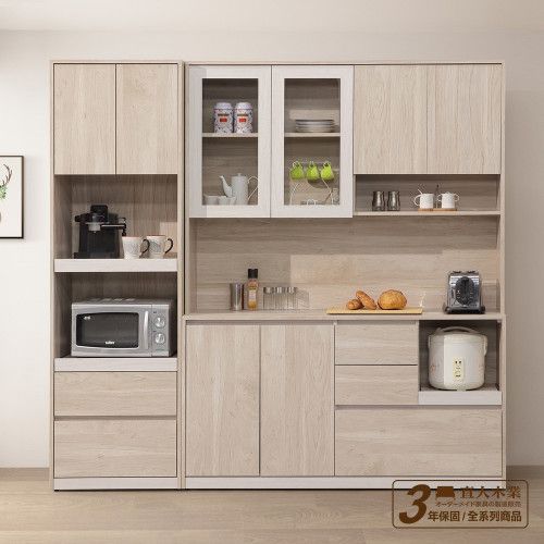 TESS 淺橡極簡風電器櫃櫥櫃組213CM(電器櫃61CM+櫥櫃152CM)