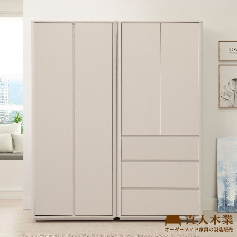莫蘭迪奶油雲朵160CM開門衣櫃組 (雙吊+三抽)