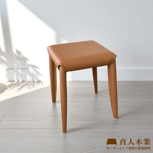 ANTON 馬鞍皮方凳-焦糖黃