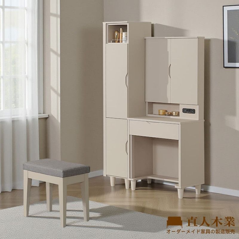 RJ 現代奶油風91CM側拉鏡化妝桌椅組