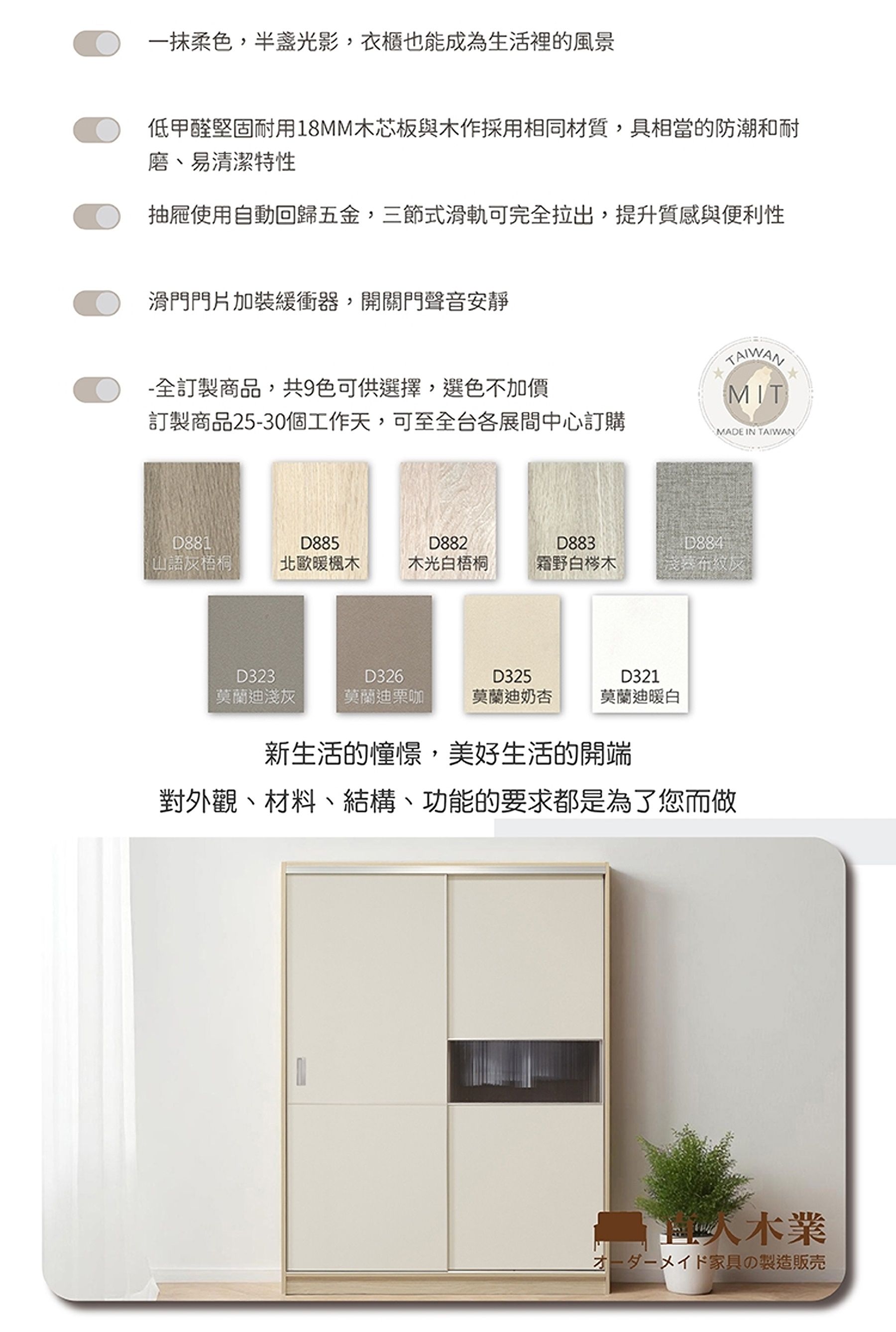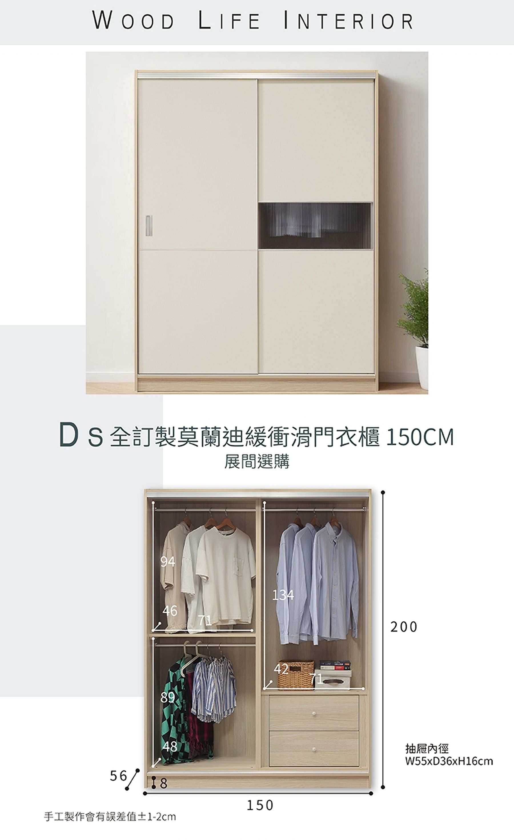 【限定門市選購】DS 全訂製蘭迪緩衝150CM滑門衣櫃