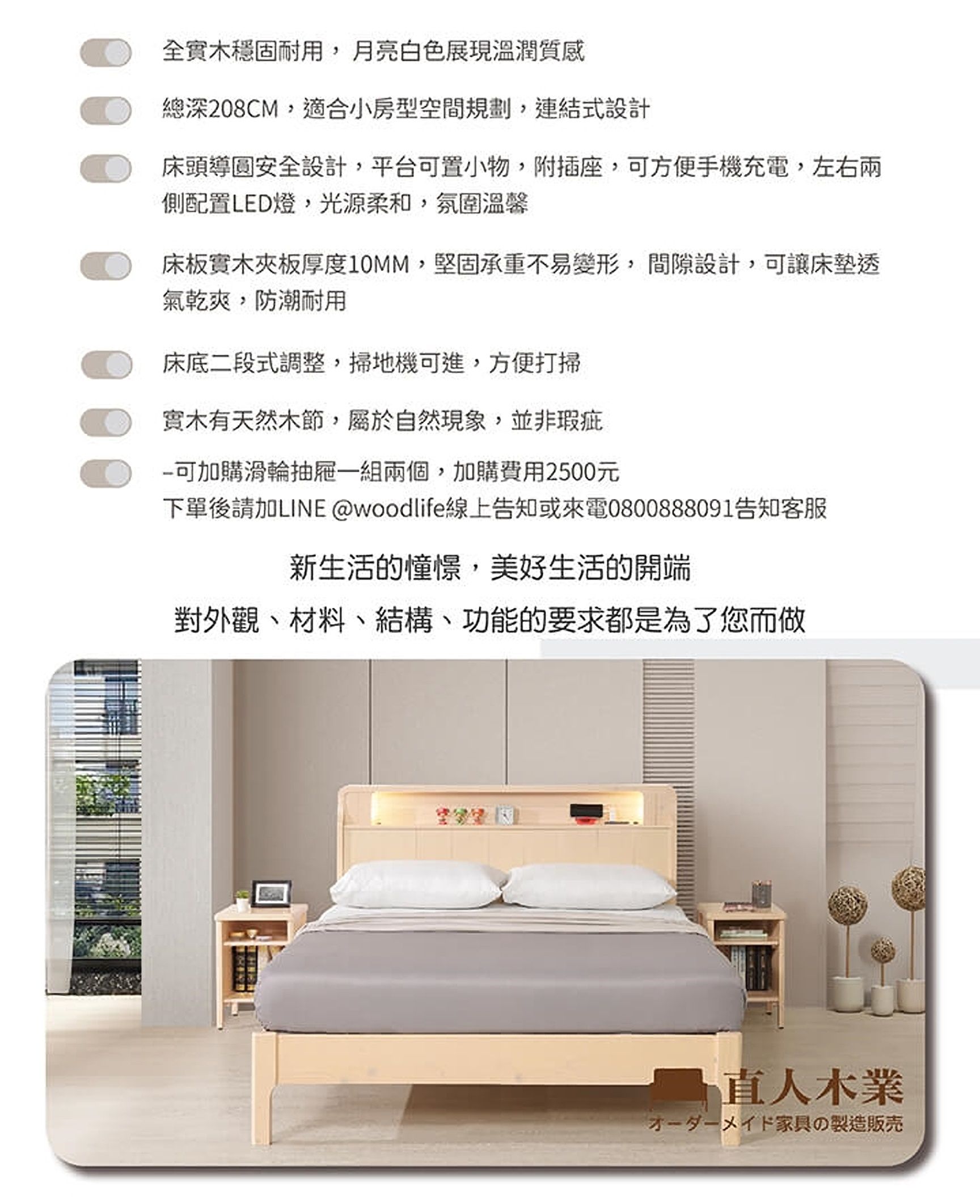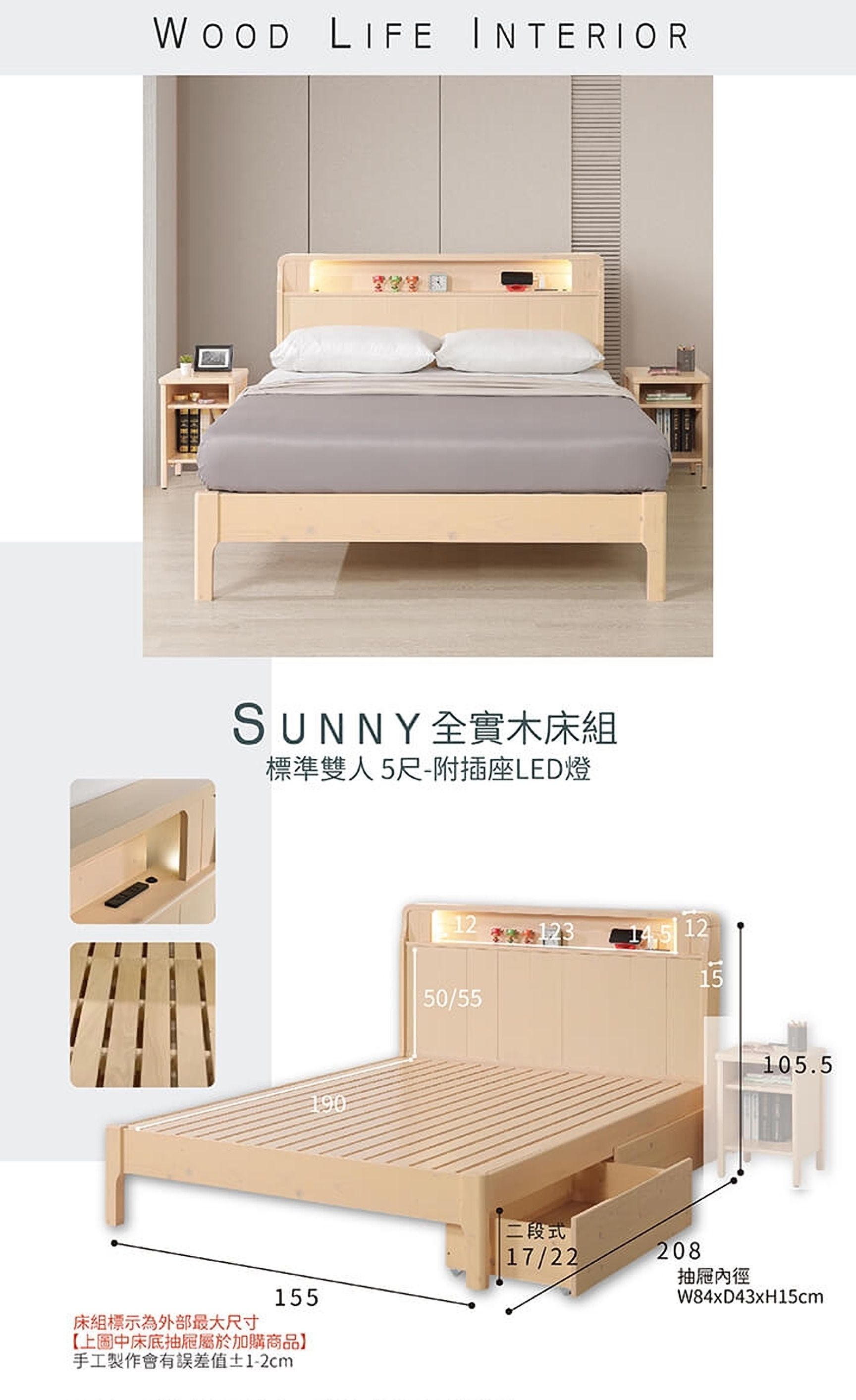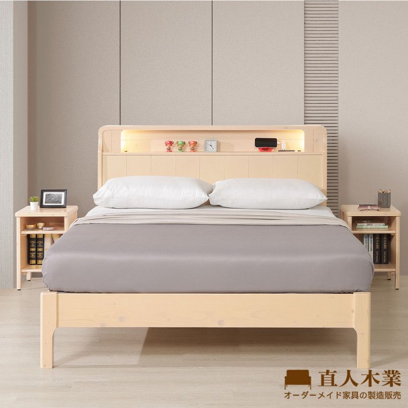 SUNNY 全實木床組(附插座LED燈)-標準雙人5尺