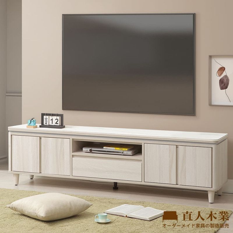 TESS 淺橡極簡風亮面白陶板183CM電視櫃