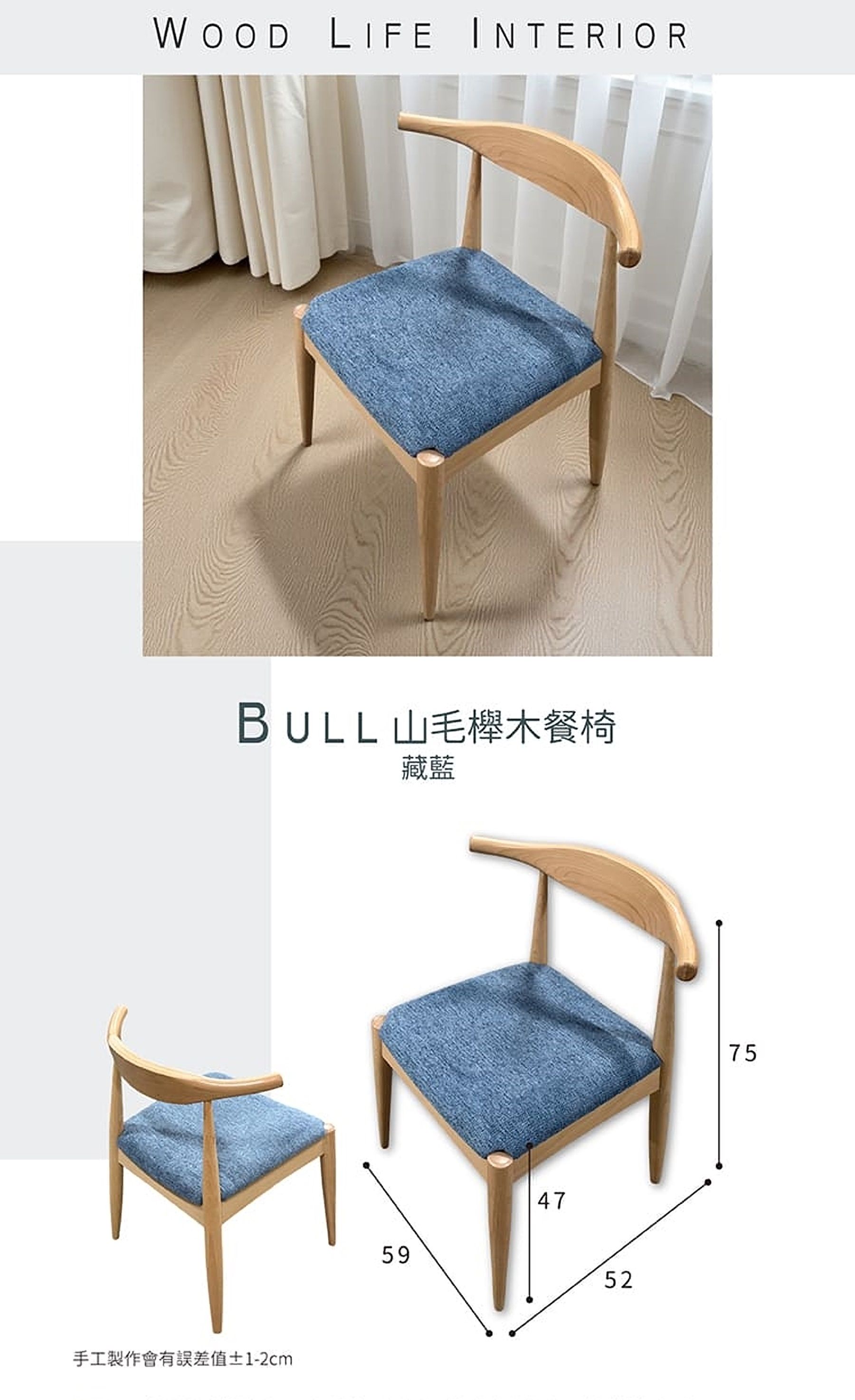 BULL 山毛櫸木餐椅-藏藍