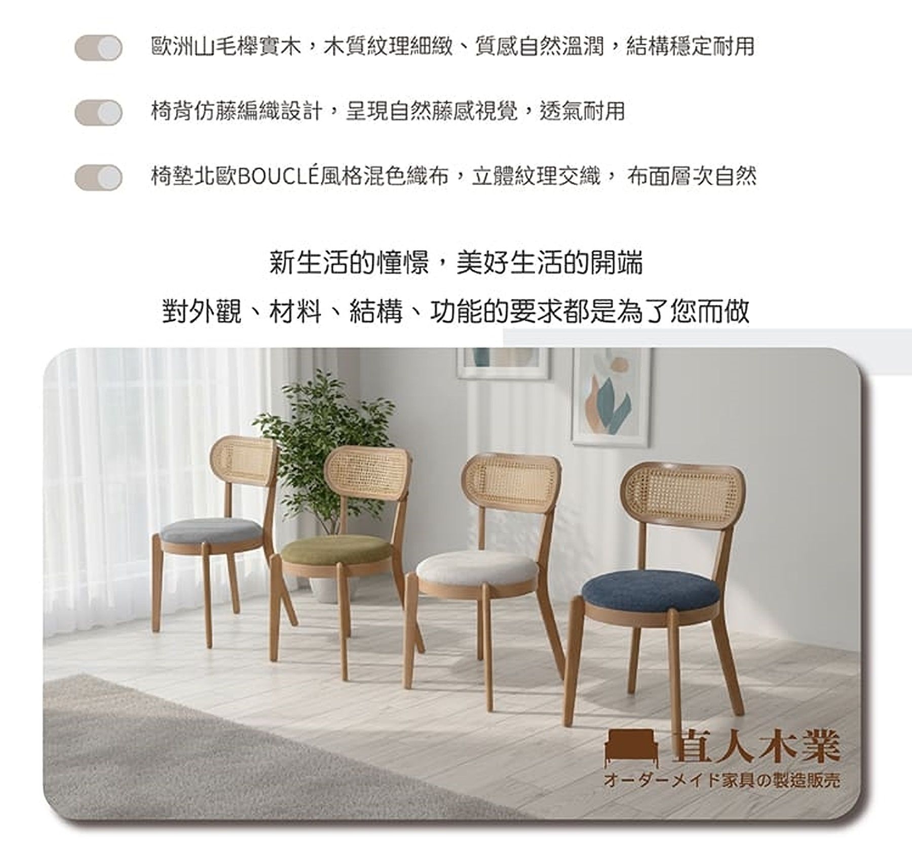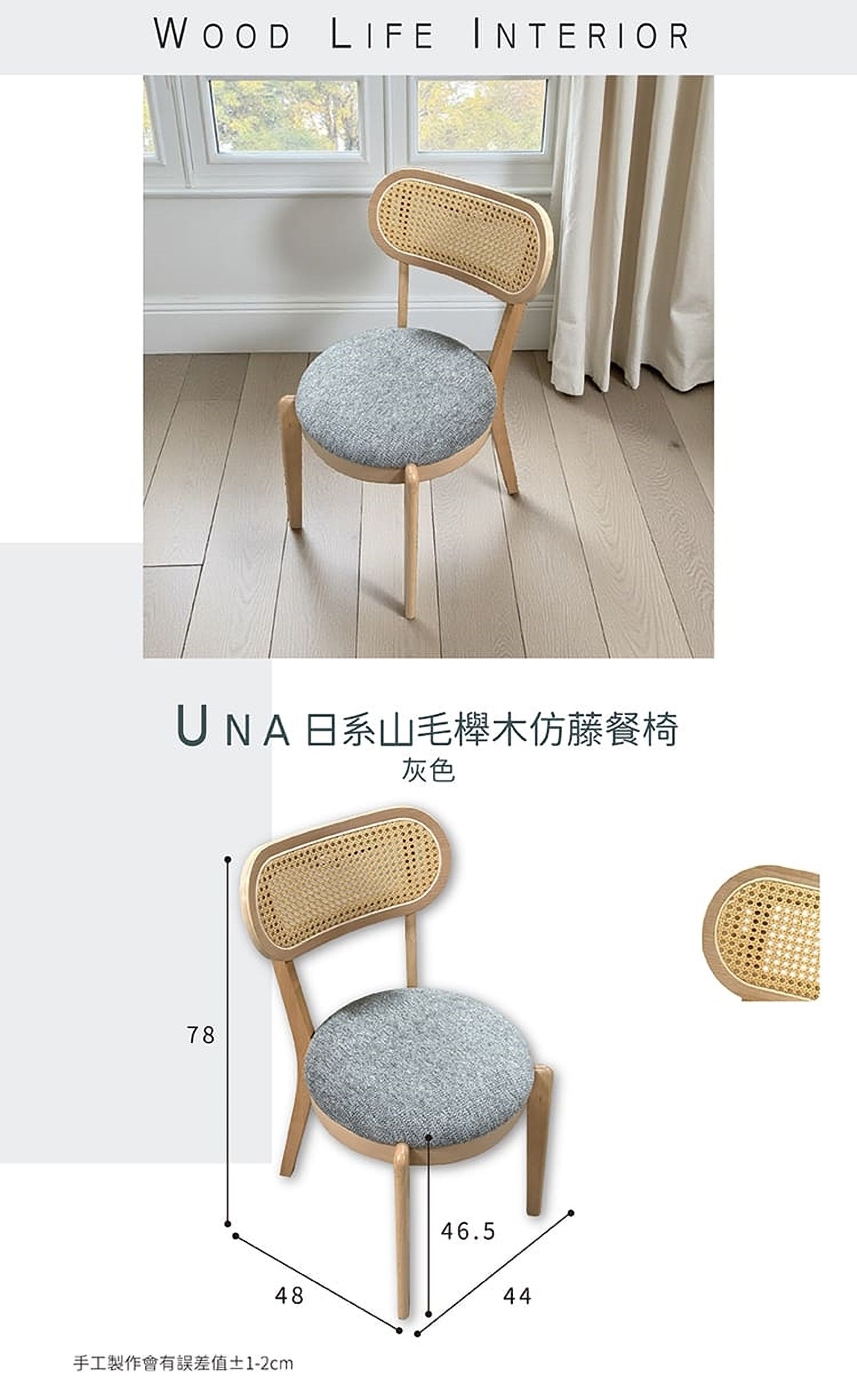 UNA 日系山毛櫸木仿藤餐椅-灰色