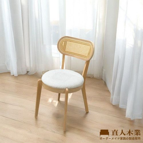 UNA 日系山毛櫸木仿藤餐椅-米白