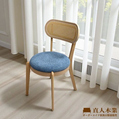 UNA 日系山毛櫸木仿藤餐椅-藏藍