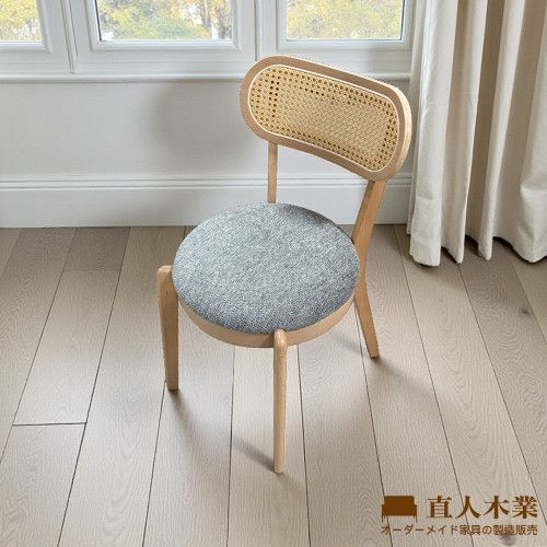 UNA 日系山毛櫸木仿藤餐椅-灰色