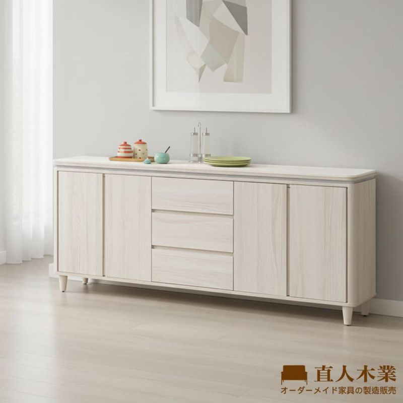 TESS 淺橡極簡風亮面白陶板183CM櫥櫃