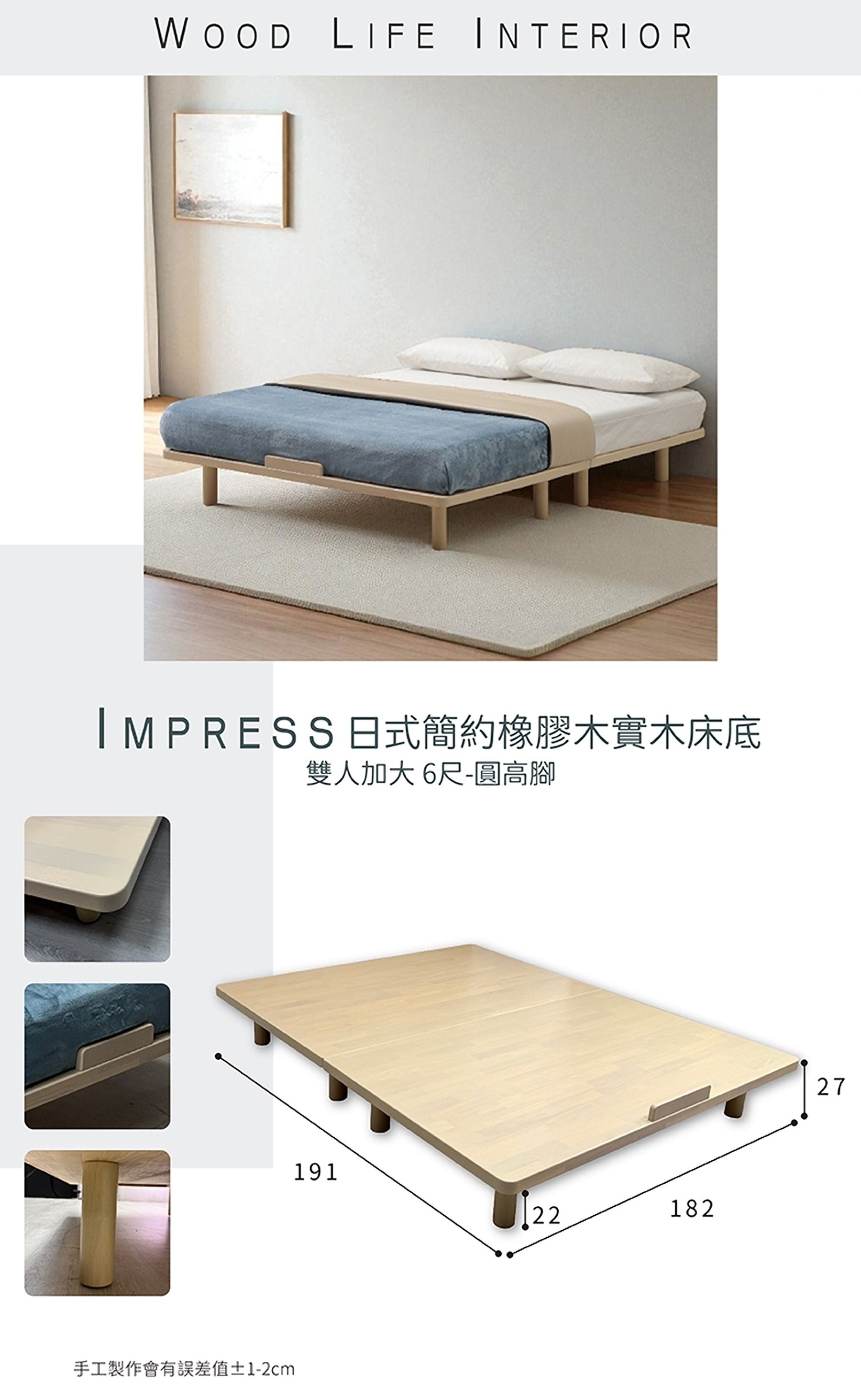 IMPRESS 日式簡約橡膠木實木6尺床底
