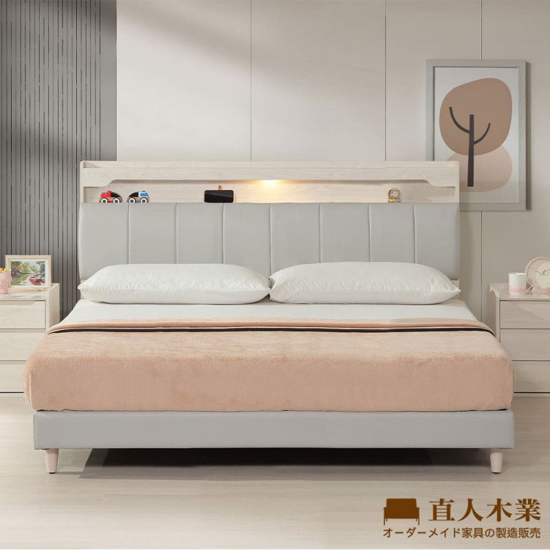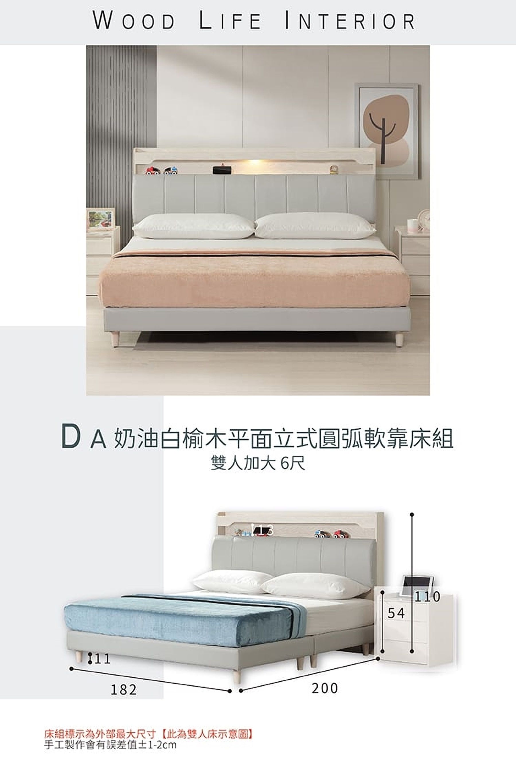DA 奶油白榆木平面立式圓弧軟靠床組-雙人加大6尺