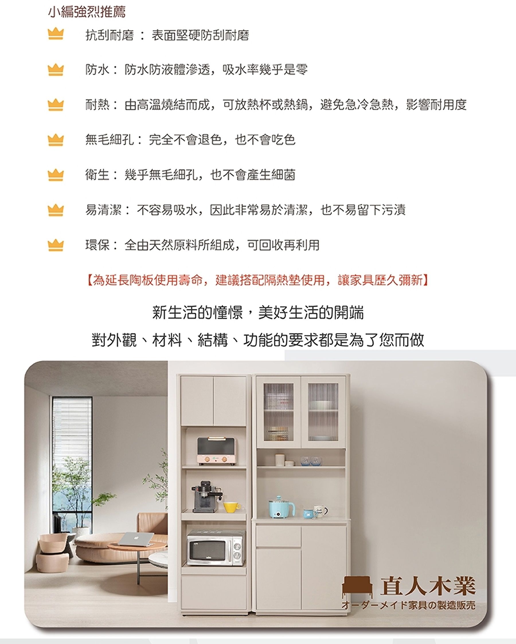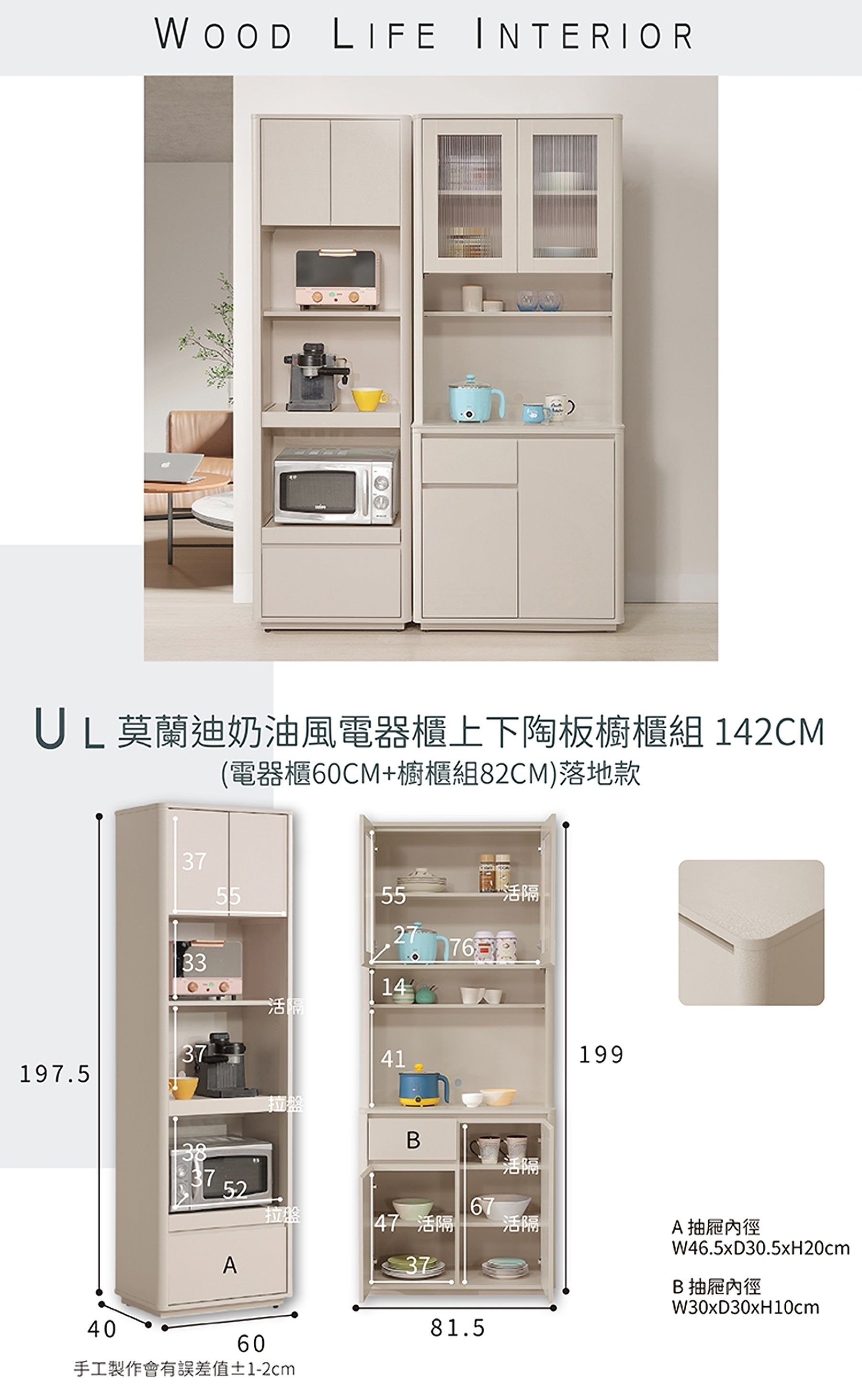 UL 莫蘭迪奶油風142CM電器櫃上下陶板櫥櫃組 (60CM電器櫃+82CM櫥櫃)