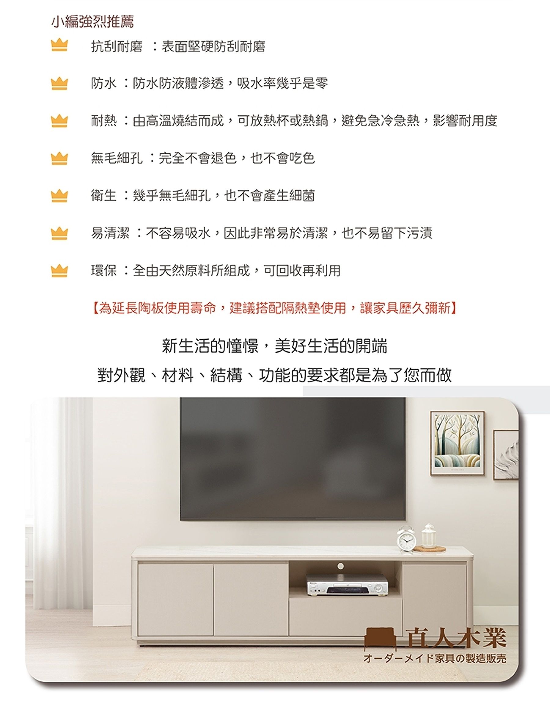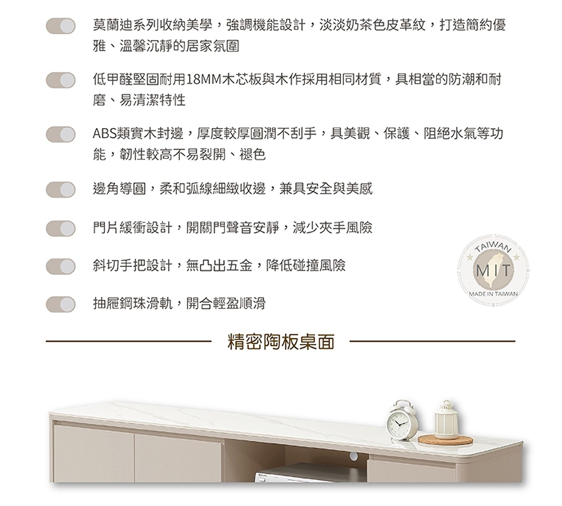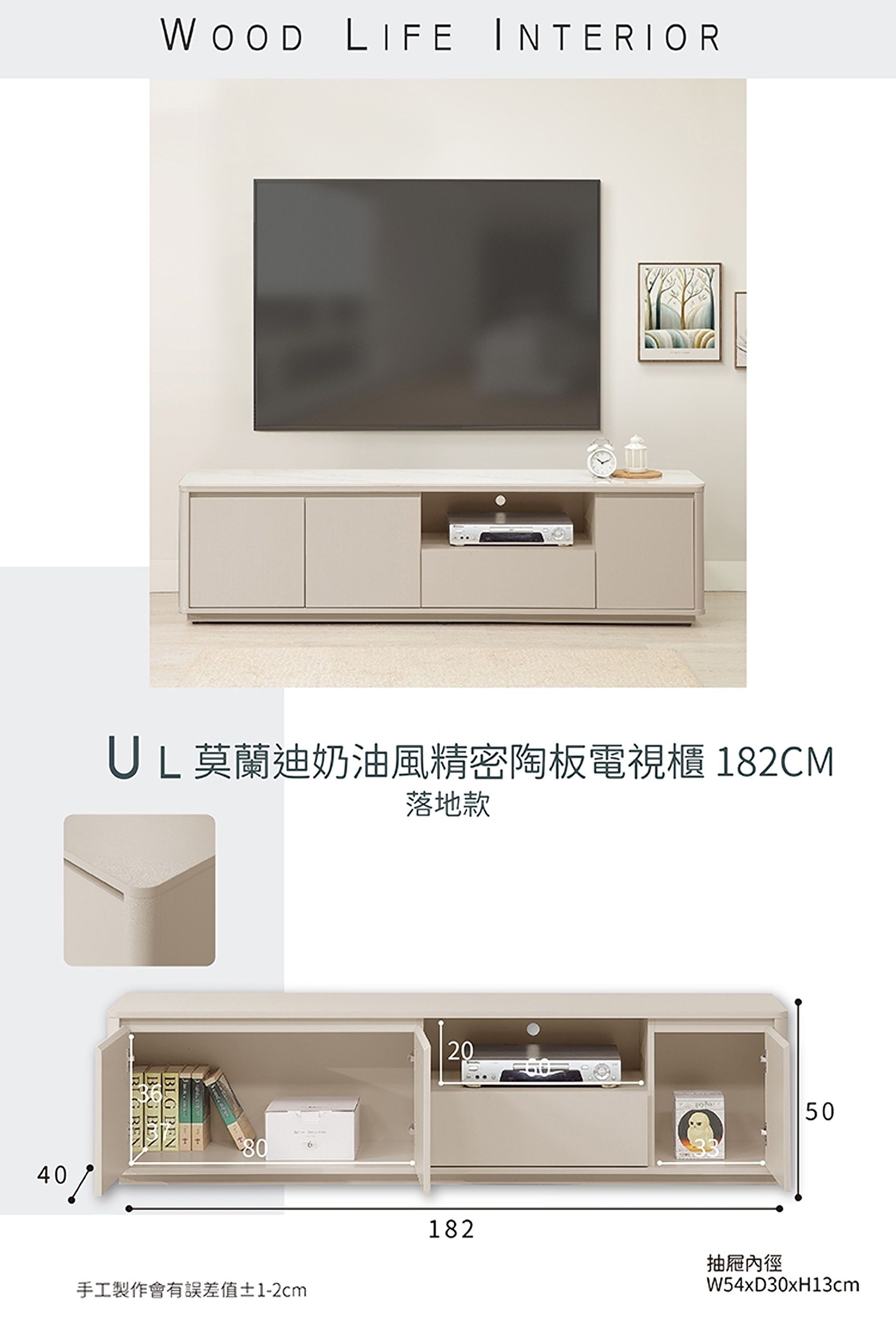 UL 莫蘭迪奶油風182CM陶板電視櫃