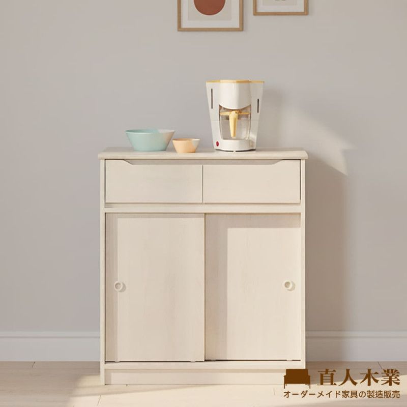 DA 奶油白榆木83CM亮面陶板滑門櫥櫃