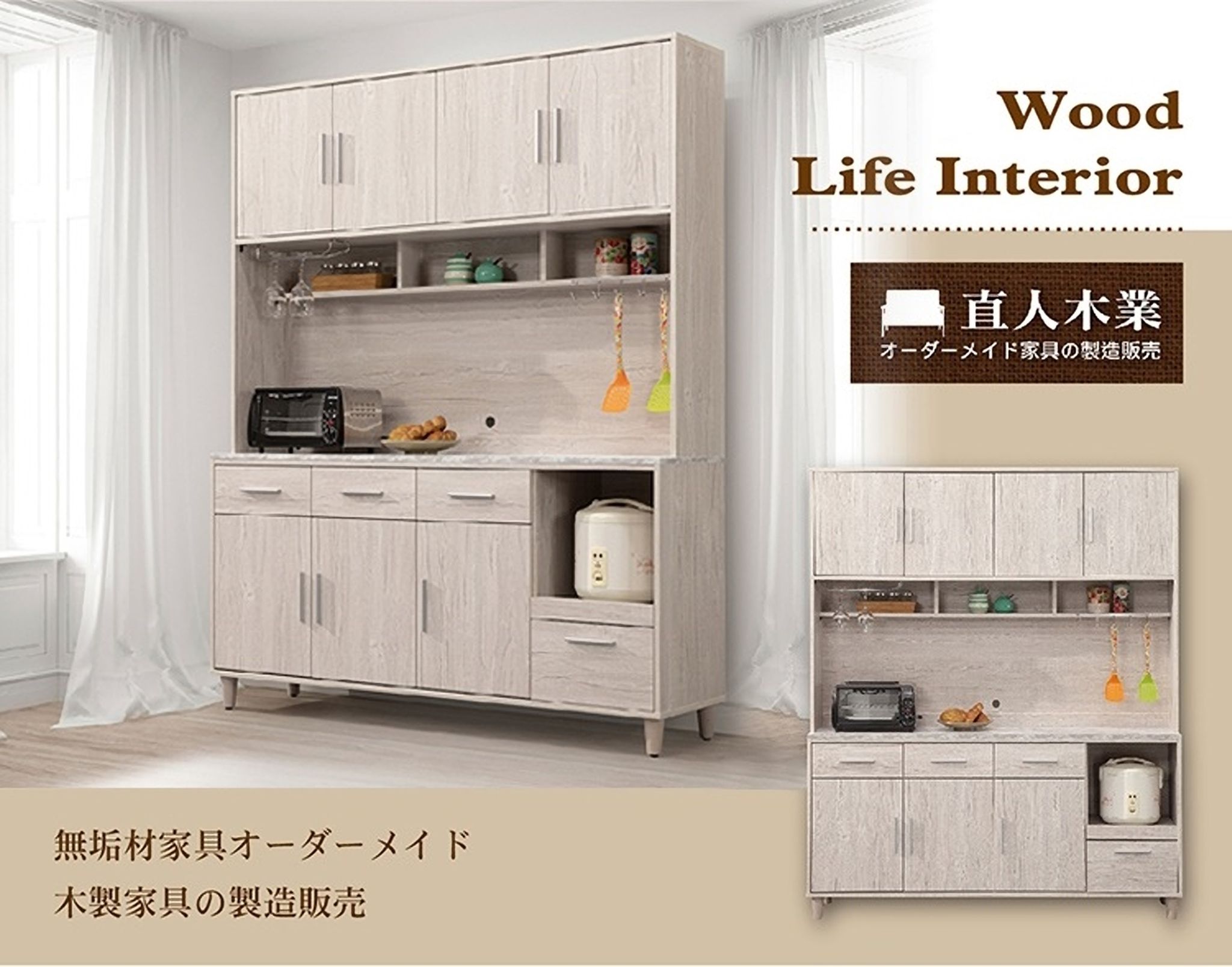 LEO 北歐風系統板桌面160CM上下廚櫃組